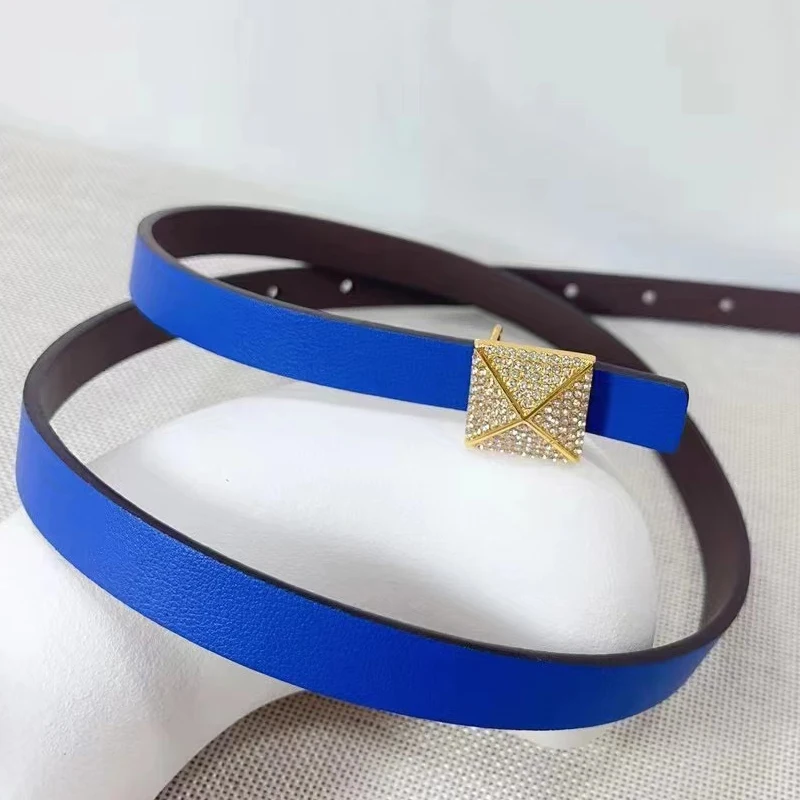 Ceinture à boucle carrée tridimensionnelle en biscuits pour femme, fine double face, décorée d'une petite ceinture, gris dia |