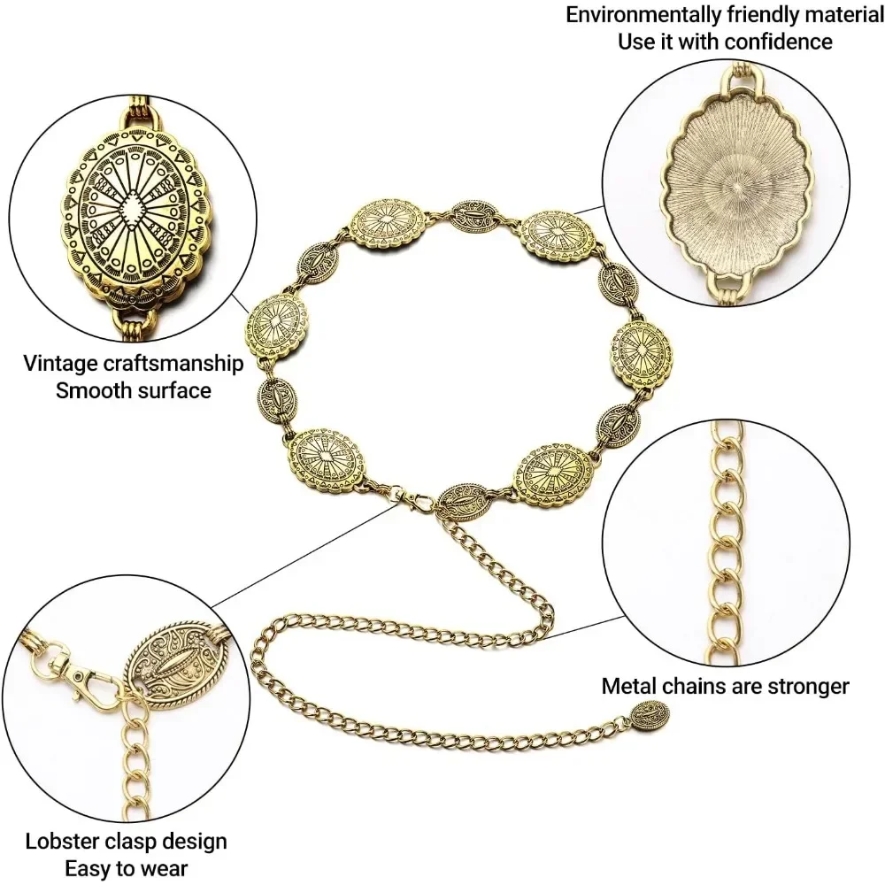 Ceinture à chaîne en métal pour femmes, Cowgirl, pays occidental, ceinture Concho réglable pour pulls, robes, Jeans