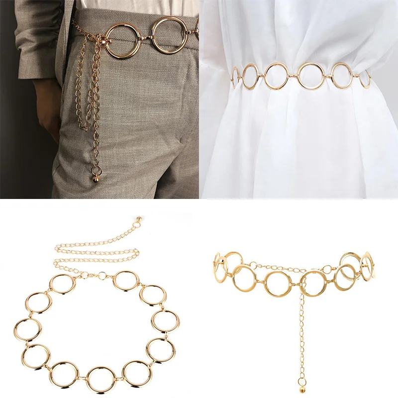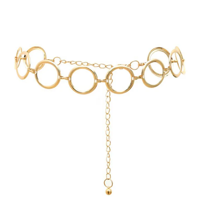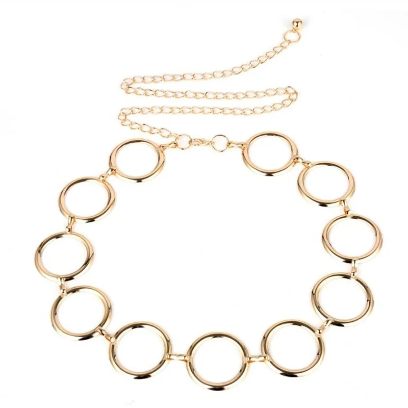Ceinture à chaîne pour femme, ceinture géométrique, ventre Long, cercle doré, en métal, à la mode, pour robe |