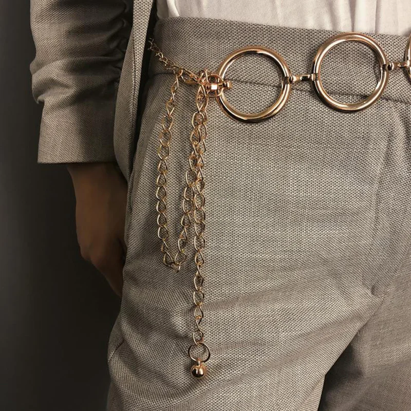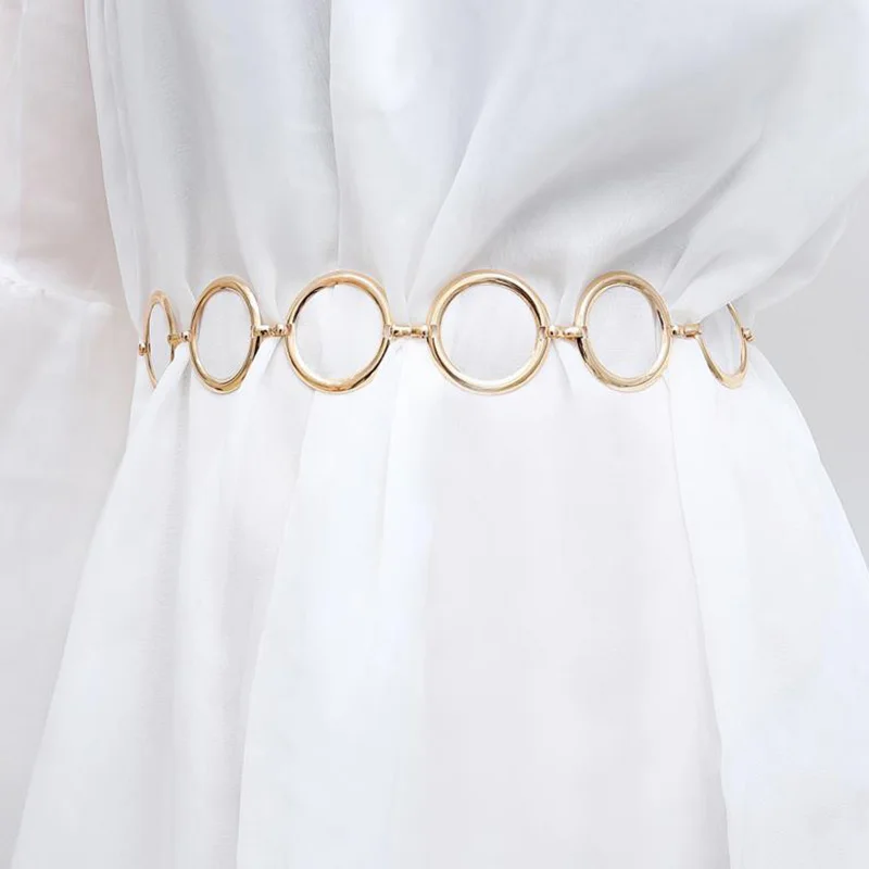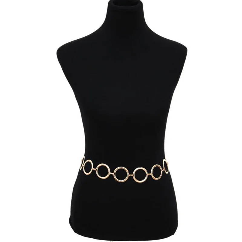 Ceinture à chaîne pour femme, ceinture géométrique, ventre Long, cercle doré, en métal, à la mode, pour robe