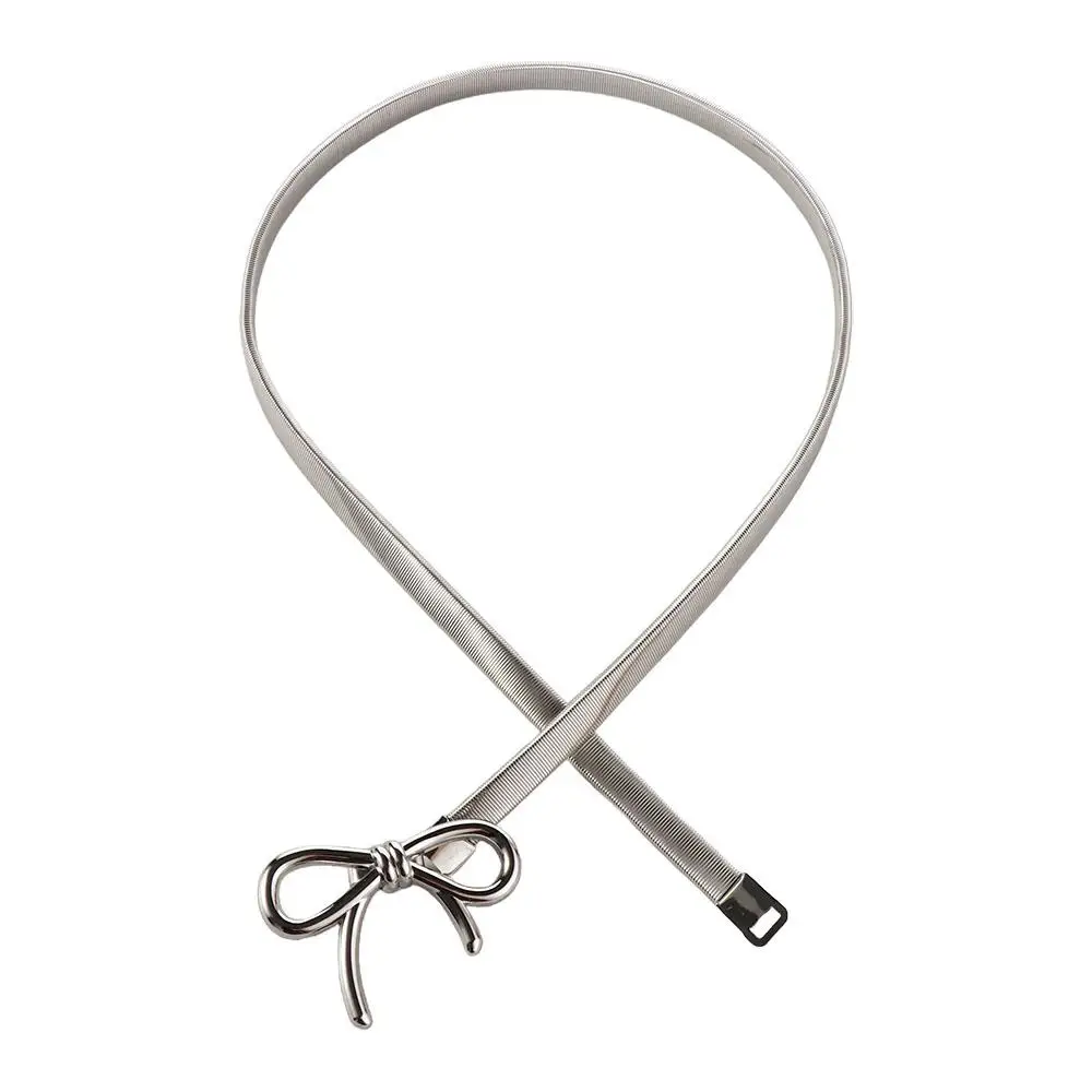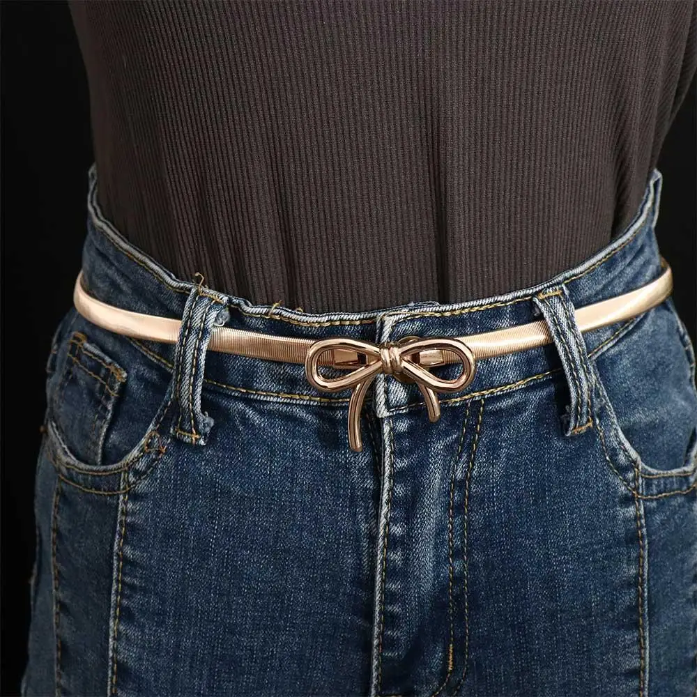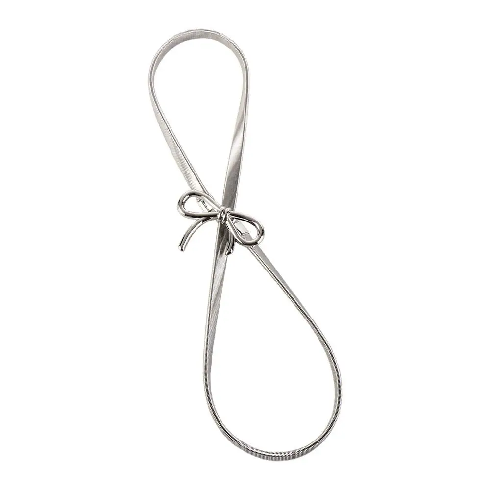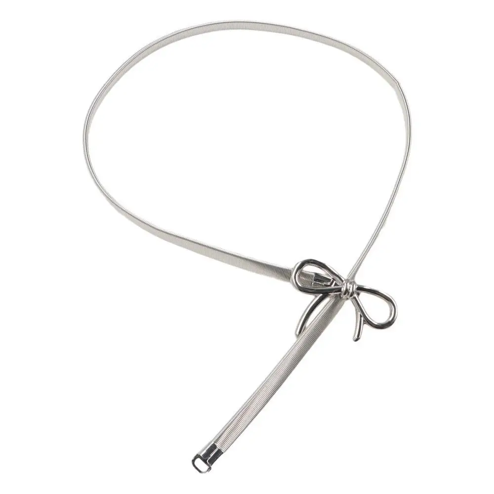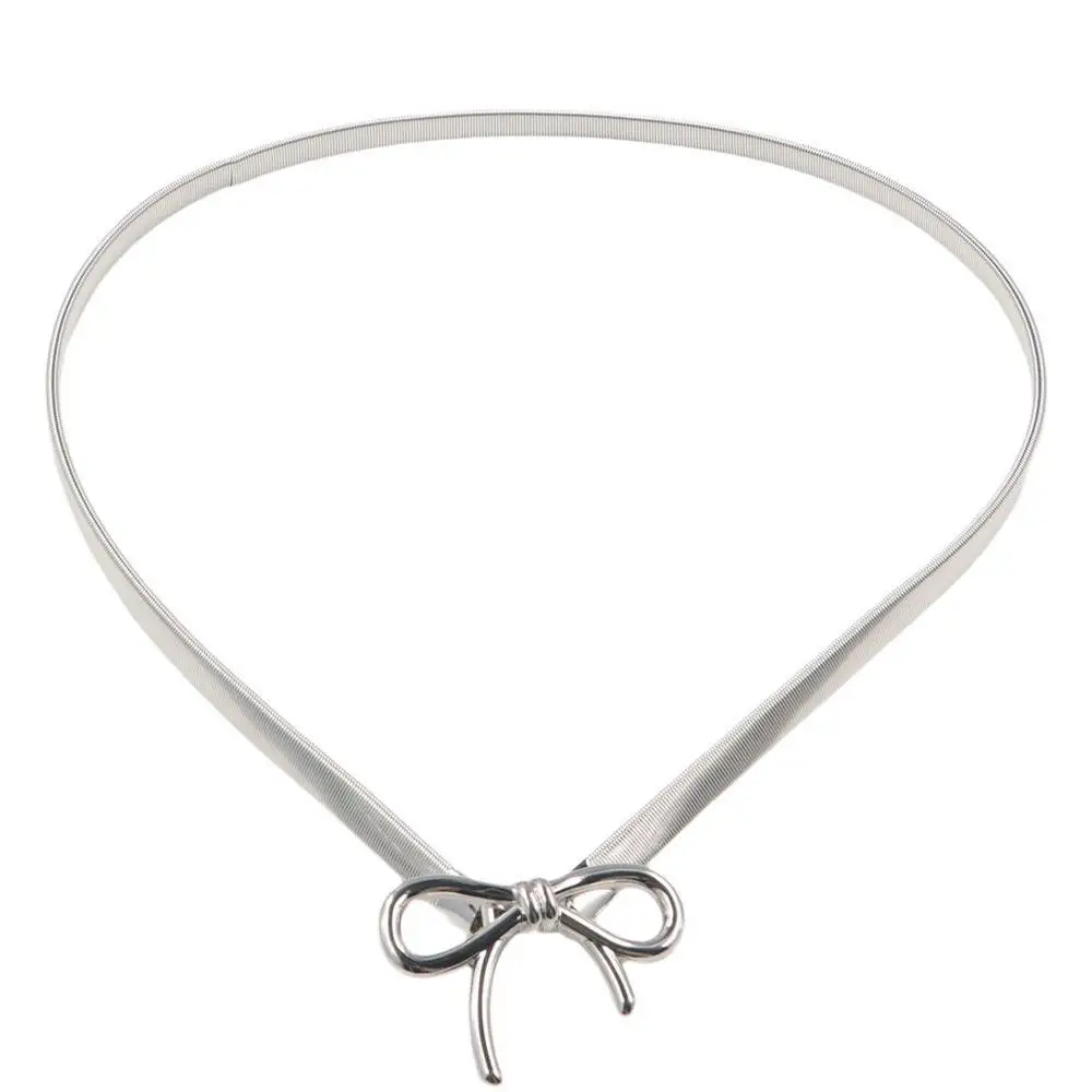 Ceinture à nœud élastique avec boucle à nœud papillon, fine, argent et or, décor de jean Y2k, chaîne de taille en métal pour femmes/filles