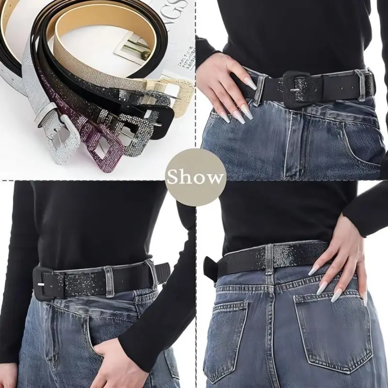 Ceinture à paillettes scintillantes pour femmes, ceinture scintillante pour jeans, adaptée à l'appariement avec divers pantalons et manteaux |