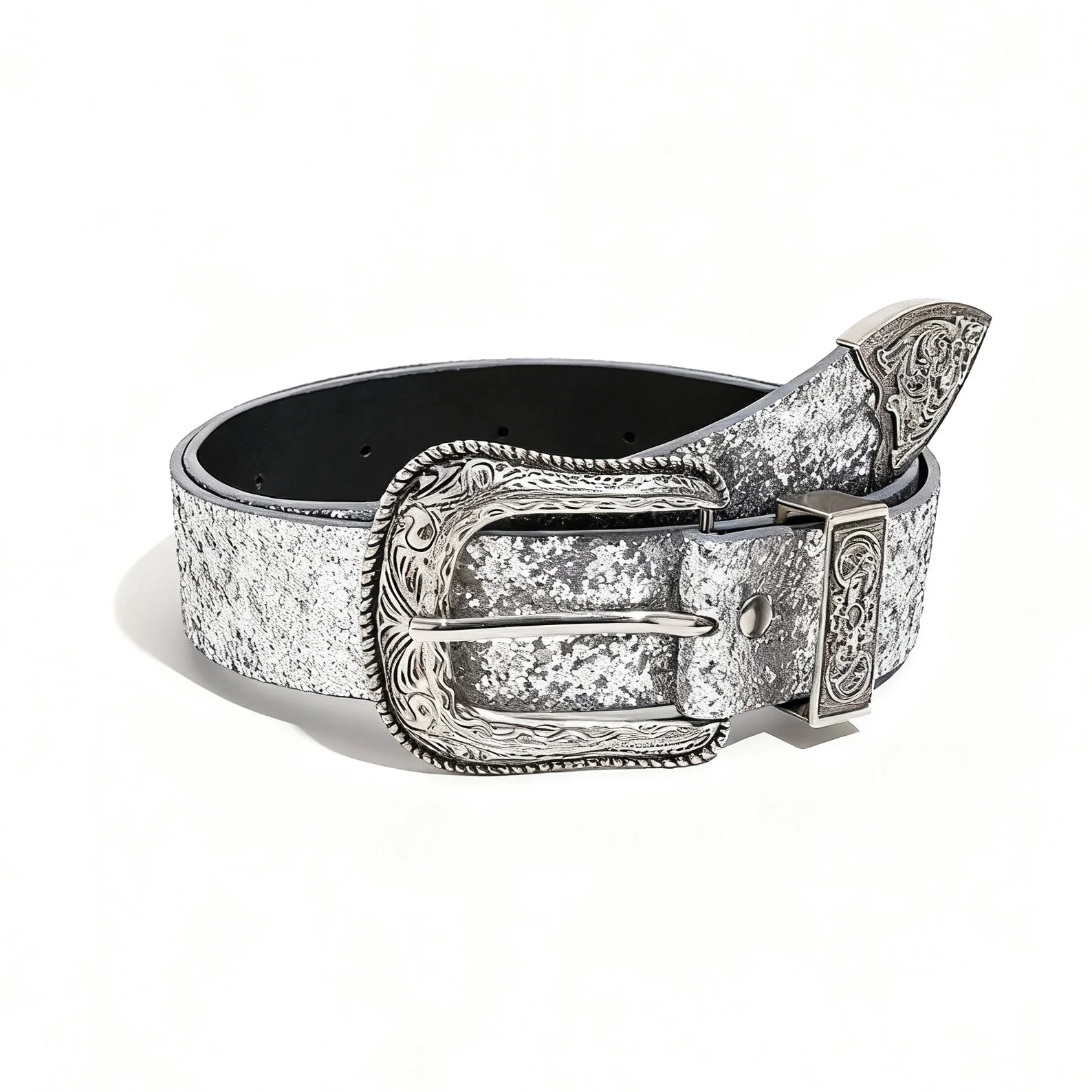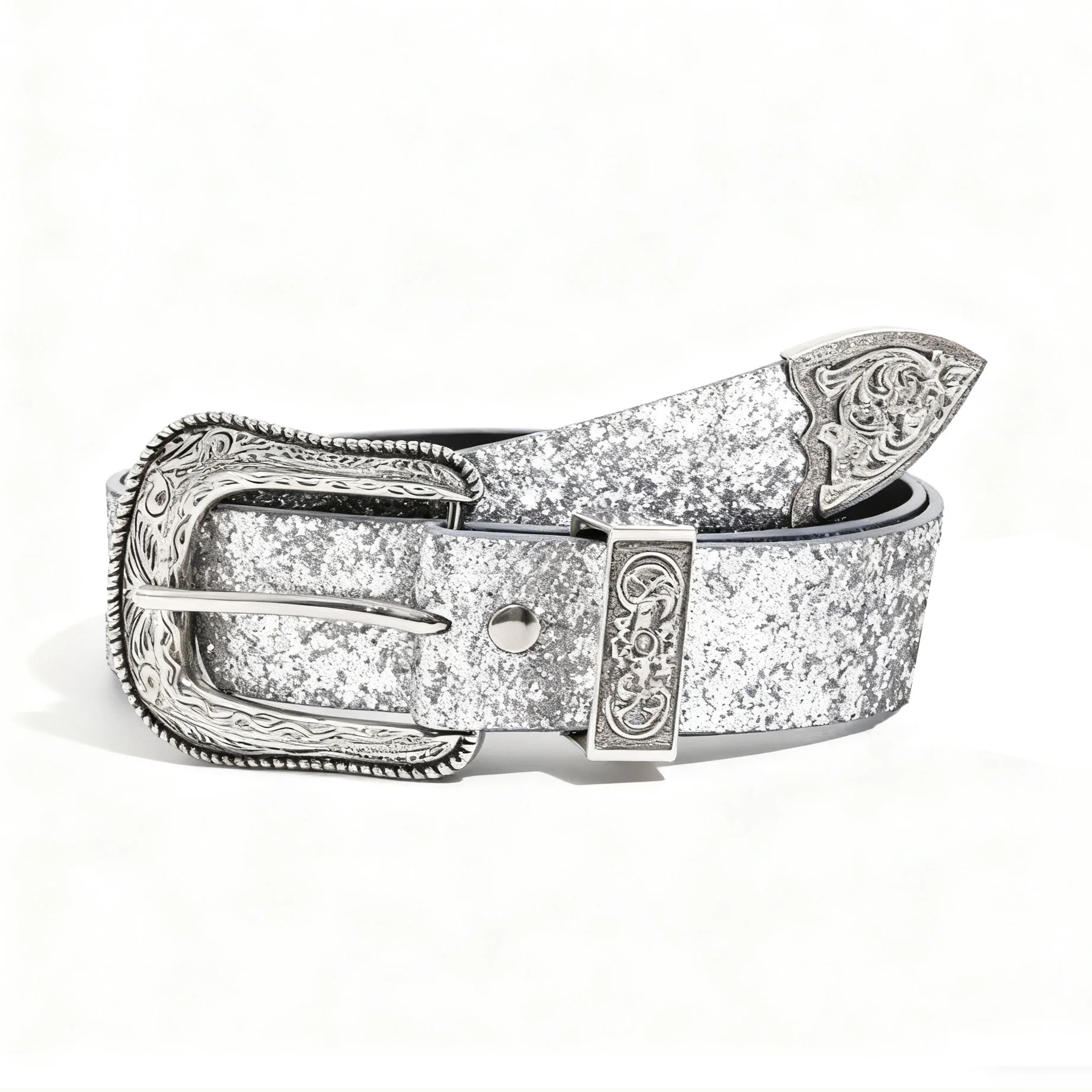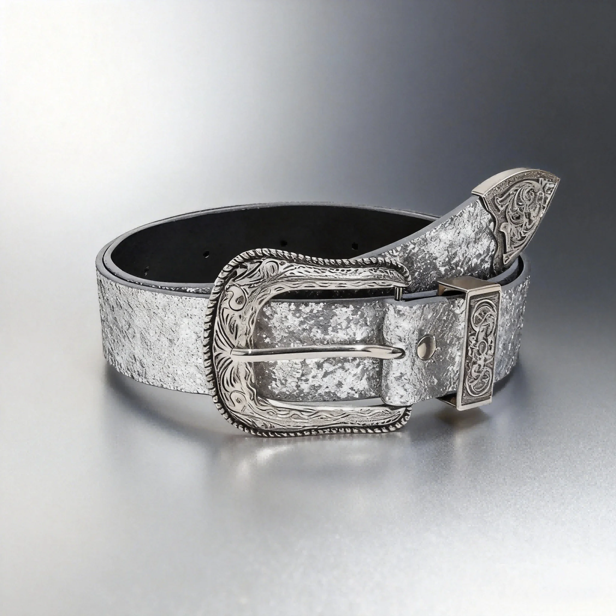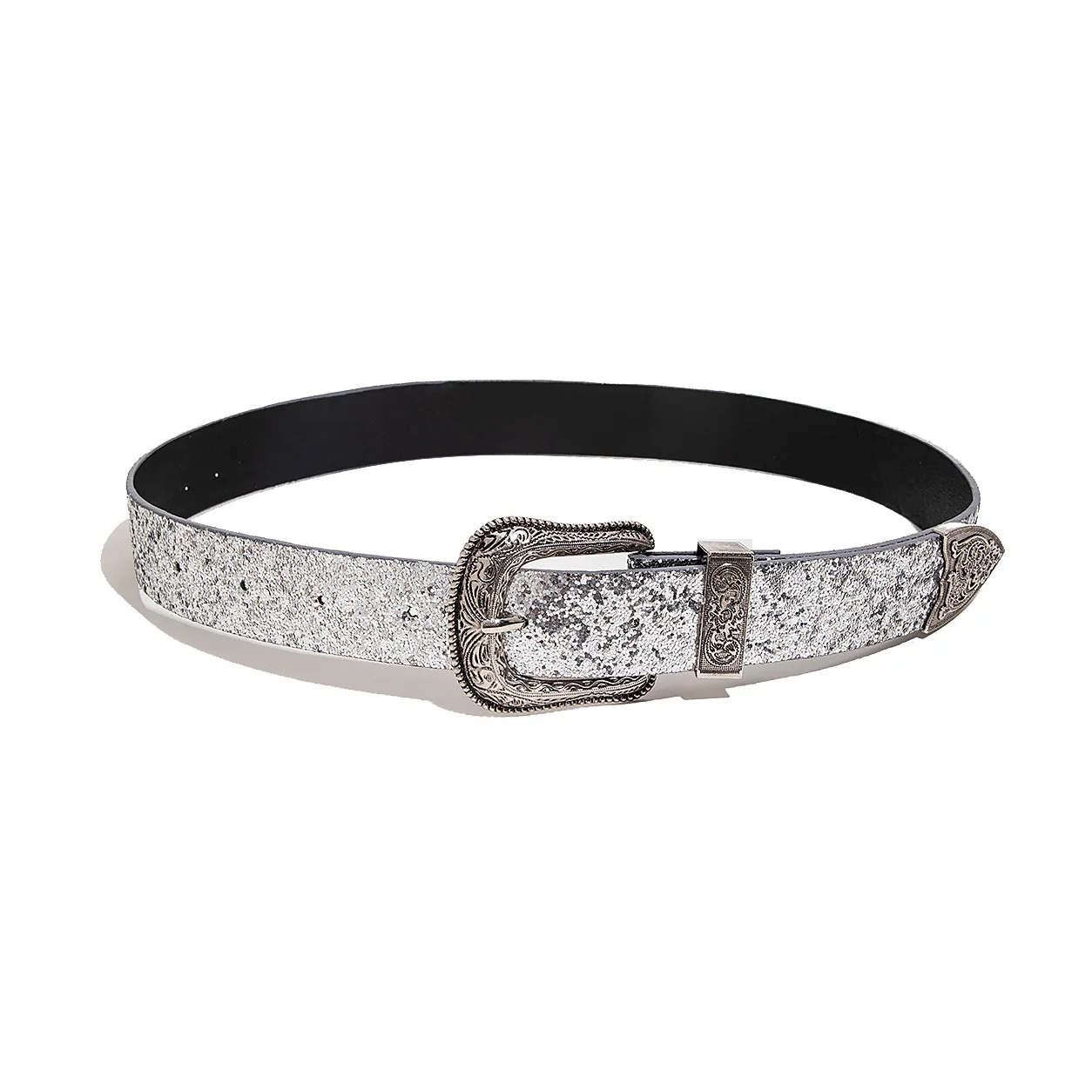 Ceinture à paillettes sculptées futuriste de style punk argenté Y2K pour femme, adaptée à un usage quotidien. |