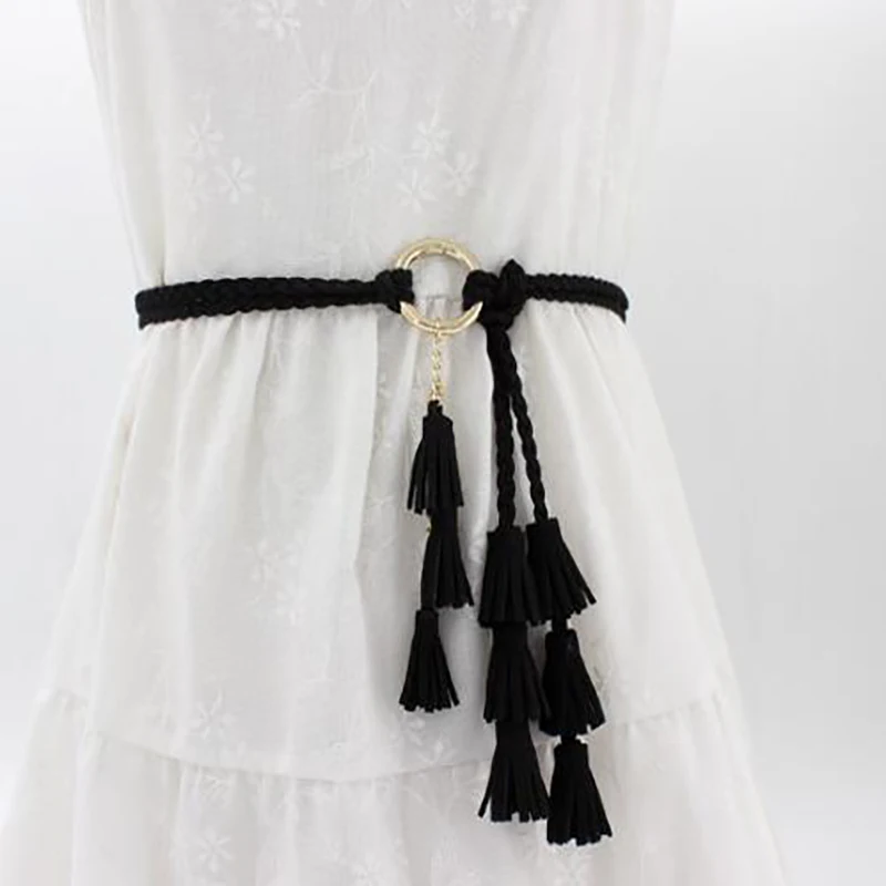 Ceinture à pampilles tressée de couleur unie pour femmes, style Boho pour filles, corde fine en tricot pour robe, accessoires, nouvelle collection 2024 |