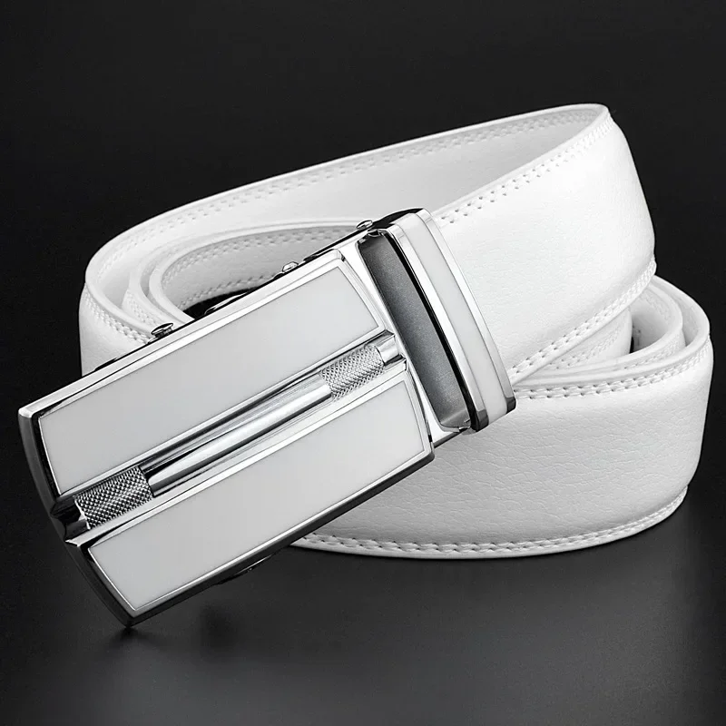 Ceinture blanche élégante pour hommes et femmes – Cuir véritable, boucle automatique, 3,5 cm pour jeans |