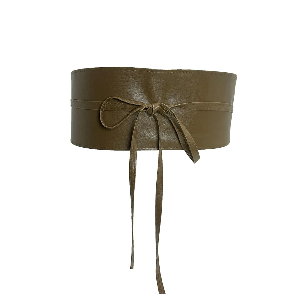 Ceinture Boho en Faux cuir pour femmes, avec nœud papillon, Style Obi, ceinture cintrée, noire, marron, large, Corset