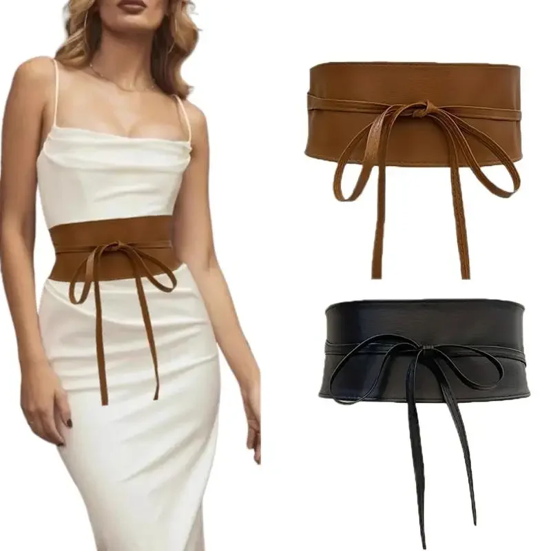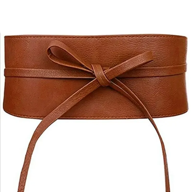 Ceinture Boho en Faux cuir pour femmes, avec nœud papillon, Style Obi, ceinture cintrée, noire, marron, large, Corset |