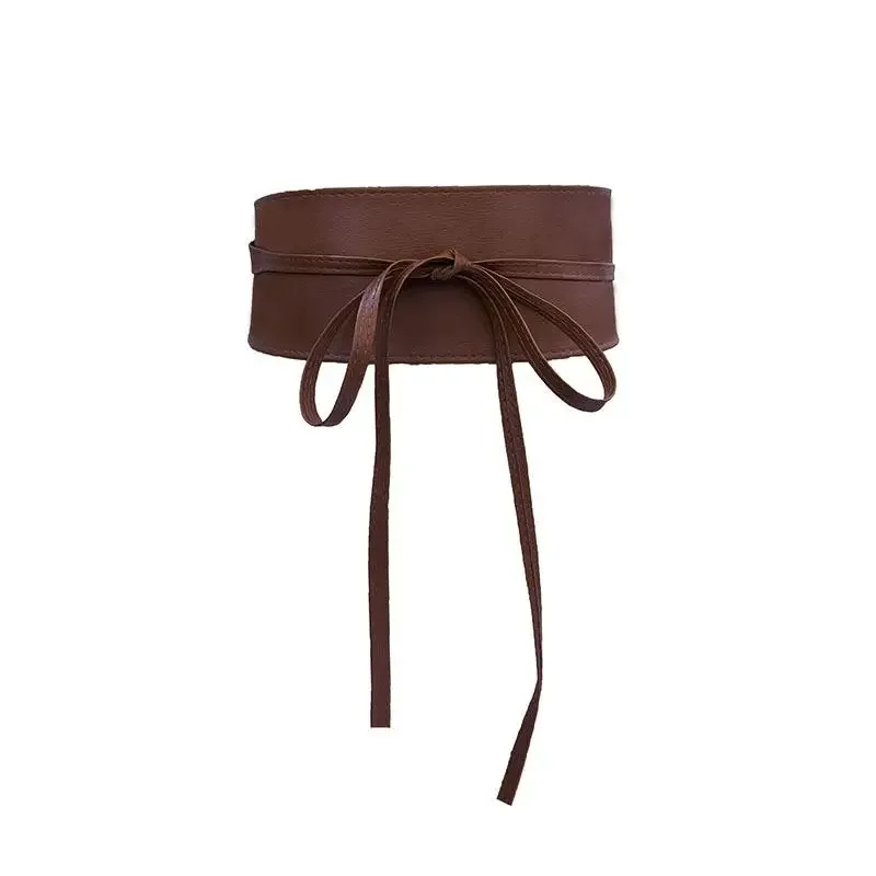 Ceinture Boho en Faux cuir pour femmes, avec nœud papillon, Style Obi, ceinture cintrée, noire, marron, large, Corset