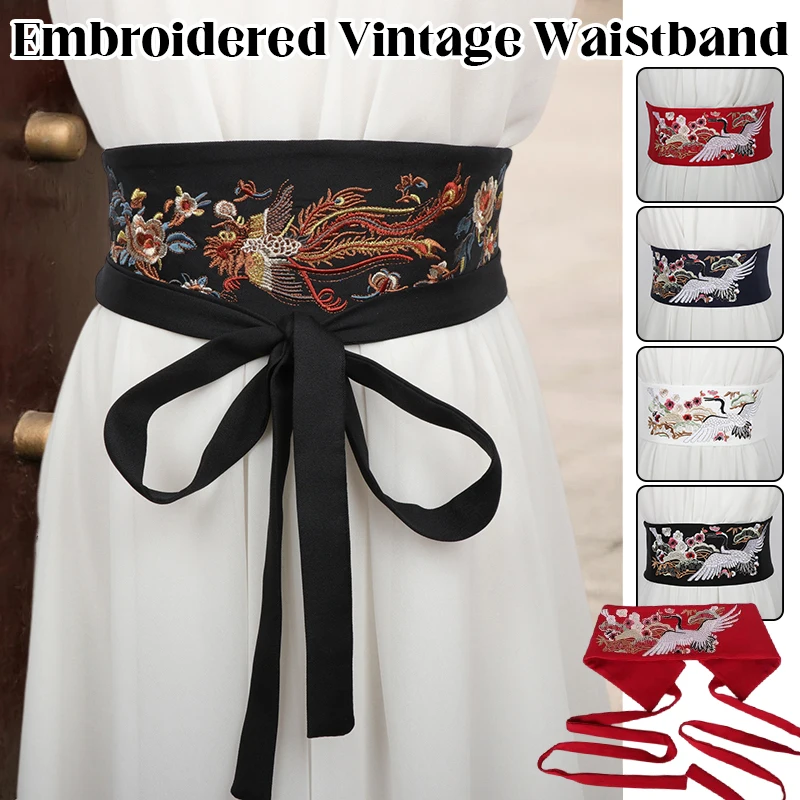 Ceinture brodée de Style japonais pour femmes, Style ethnique, Kimono Hanfu, décor de robe, ceinture de taille Haori Obi Yukata, Corset