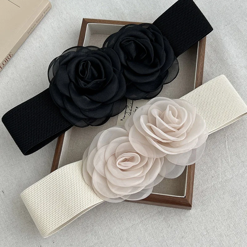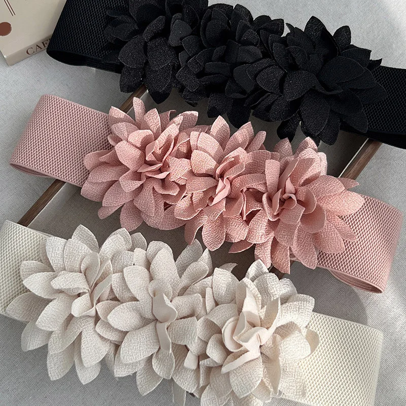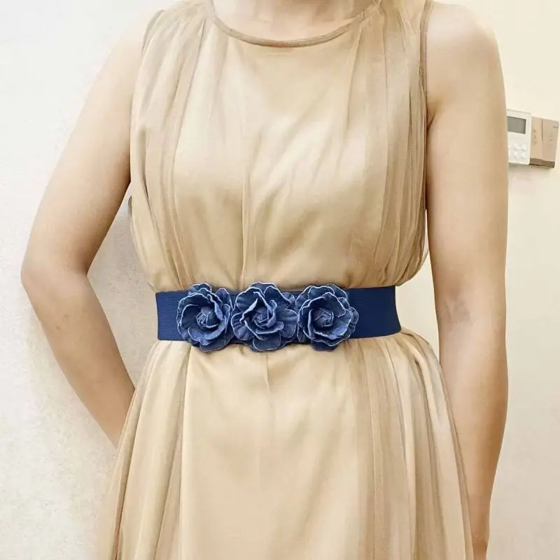 Ceinture cintrée à la taille florale élégante – Ceinture élastique extensible pour robes et styles |