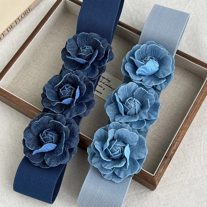 Ceinture cintrée à la taille florale élégante – Ceinture élastique extensible pour robes et styles