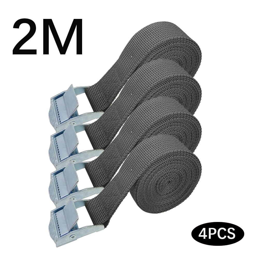 Ceinture d'arrimage à boucle 3/4p 2M, sangles de chargement pour voiture, moto, vélo, avec corde de remorquage à boucle en métal, ceinture à cliquet solide pour sac à bagages |