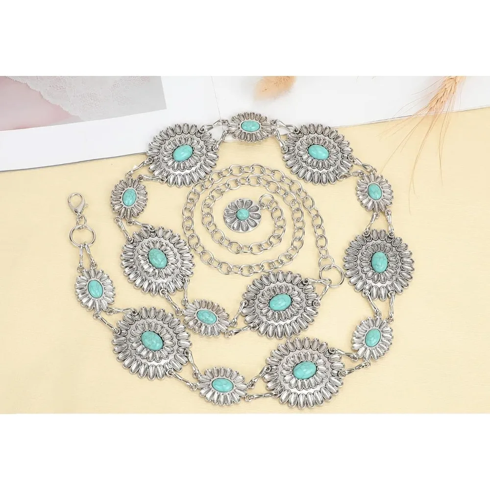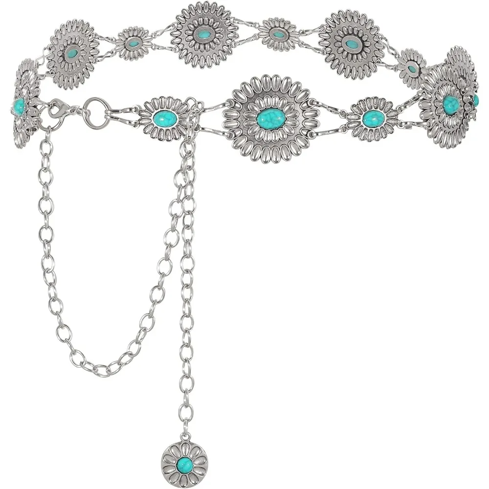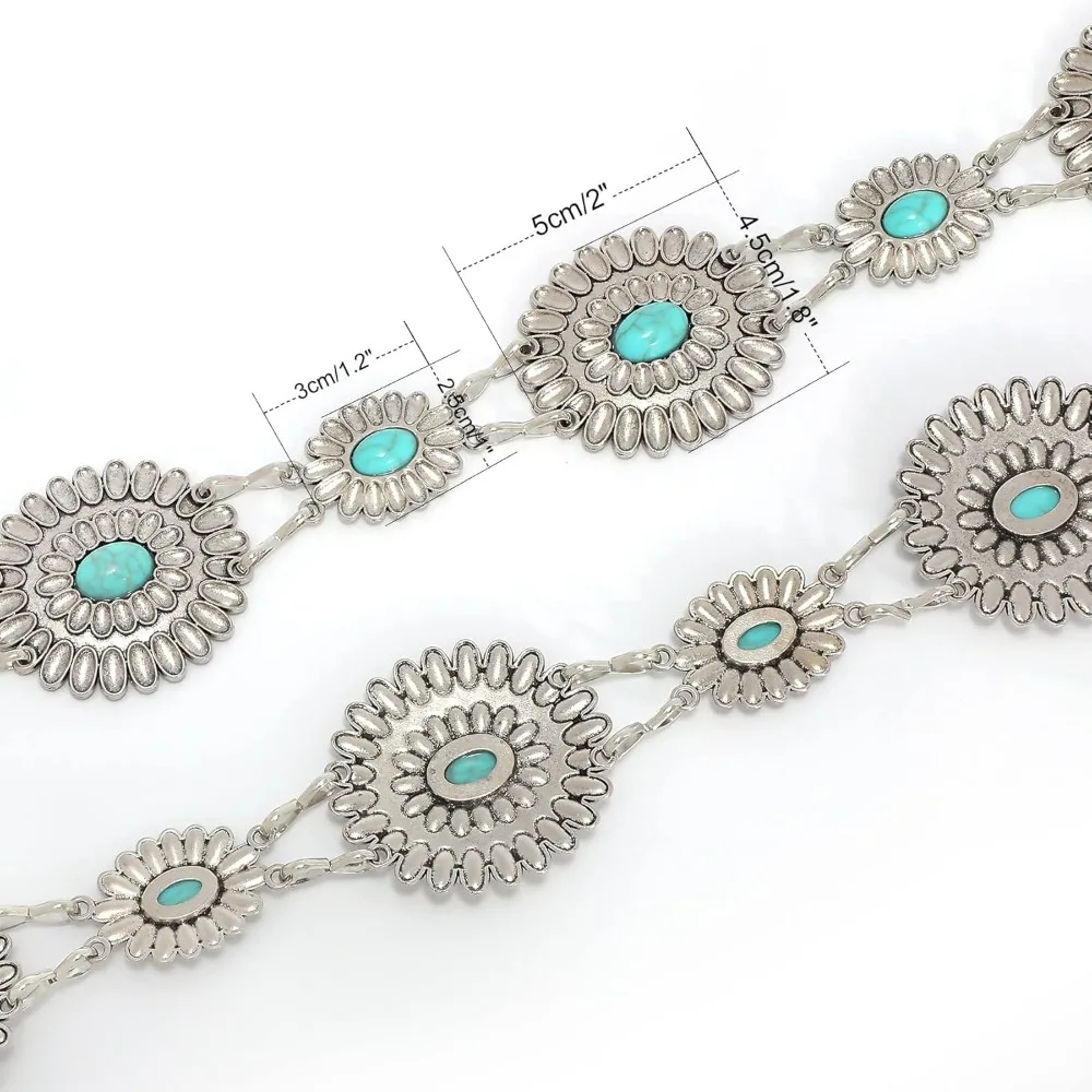 Ceinture de chaîne Concho pour femmes, maillons métalliques, Cowgirl occidentale, chaîne Turquoise pour robe |