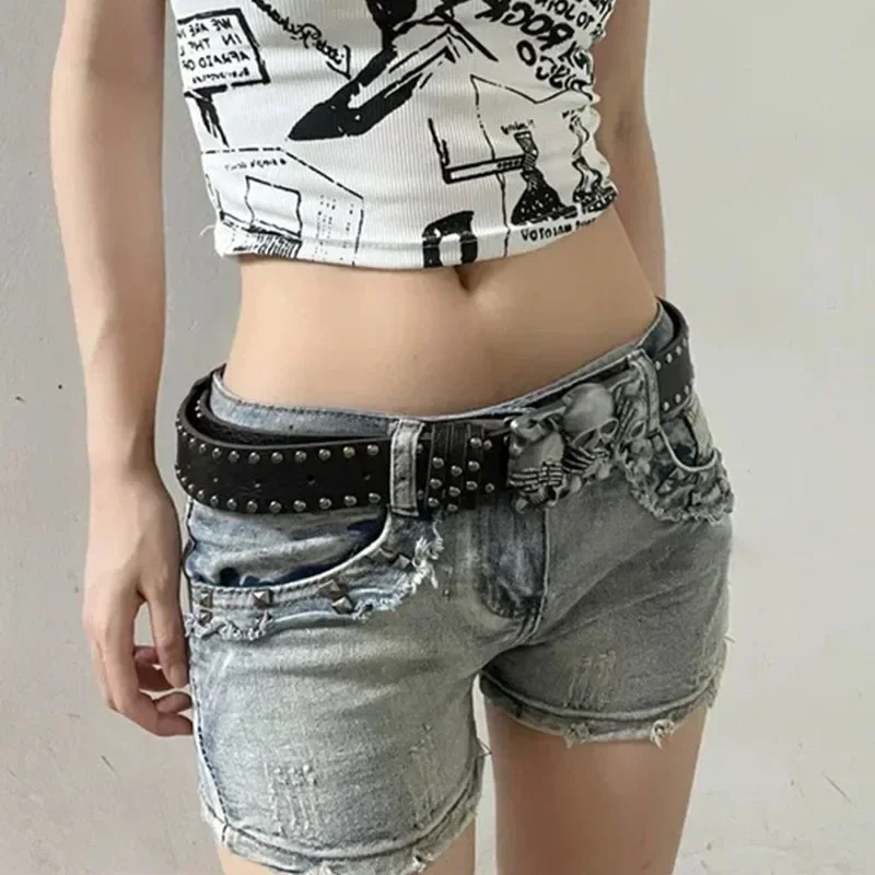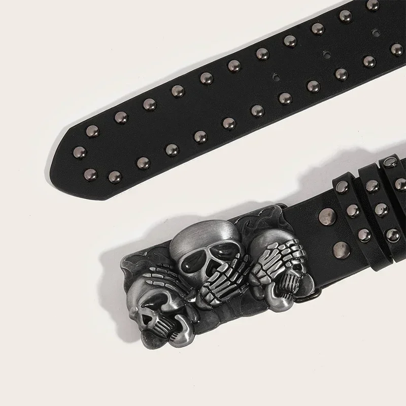 Ceinture de crâne Punk pour femmes, Harajuku gothique Y2K, Rivets squelette, décoration de main, ceinture en cuir pour hommes et filles, accessoires d’halloween