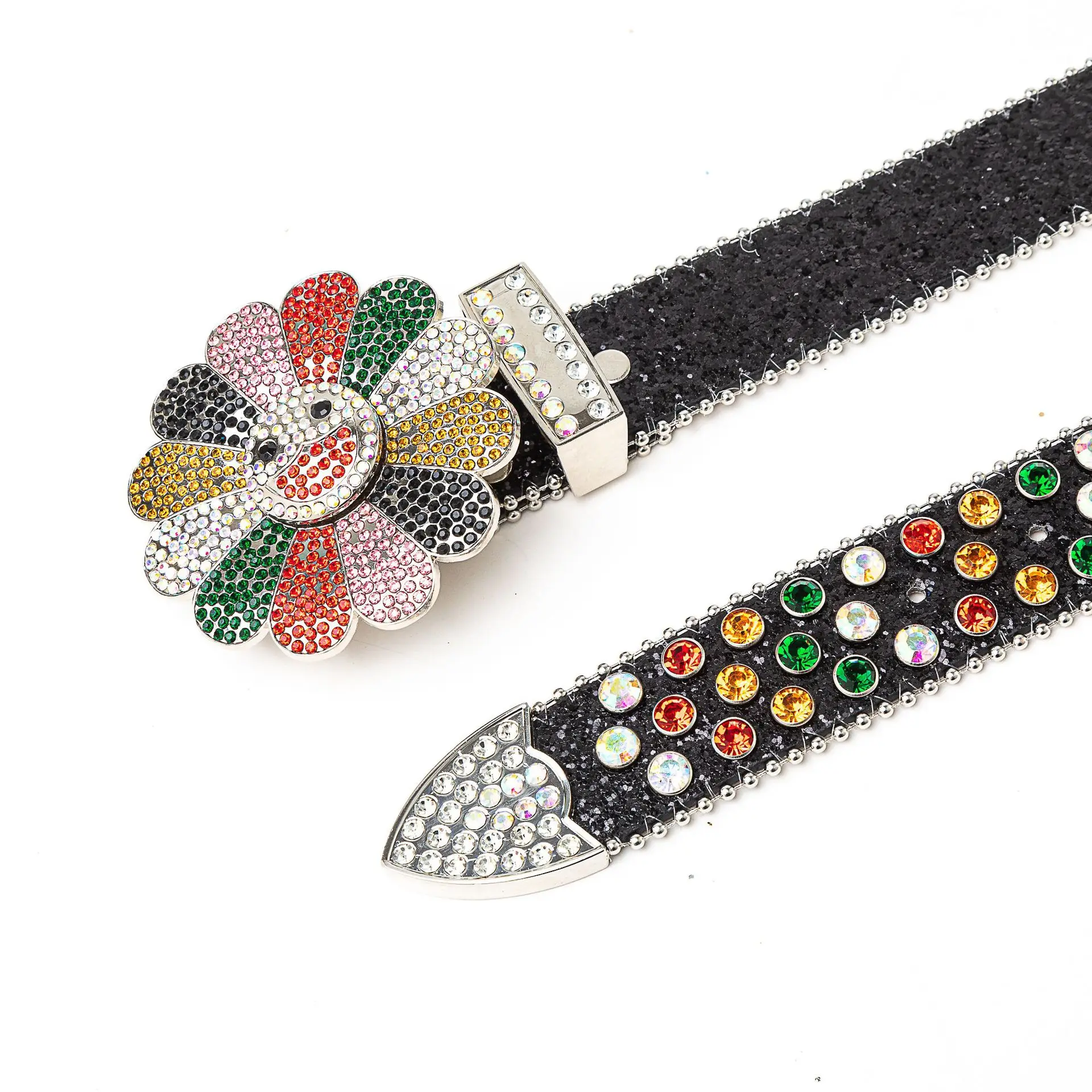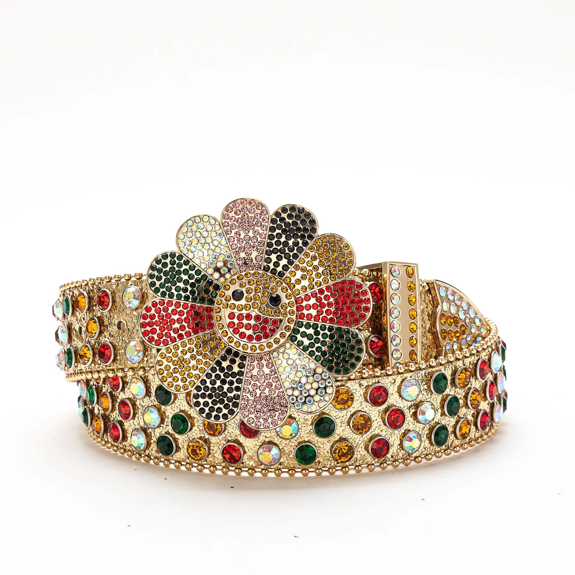Ceinture de luxe en strass colorés, brillant et éblouissant, mode punk hip hop, boucle rotative, style de rue européen |