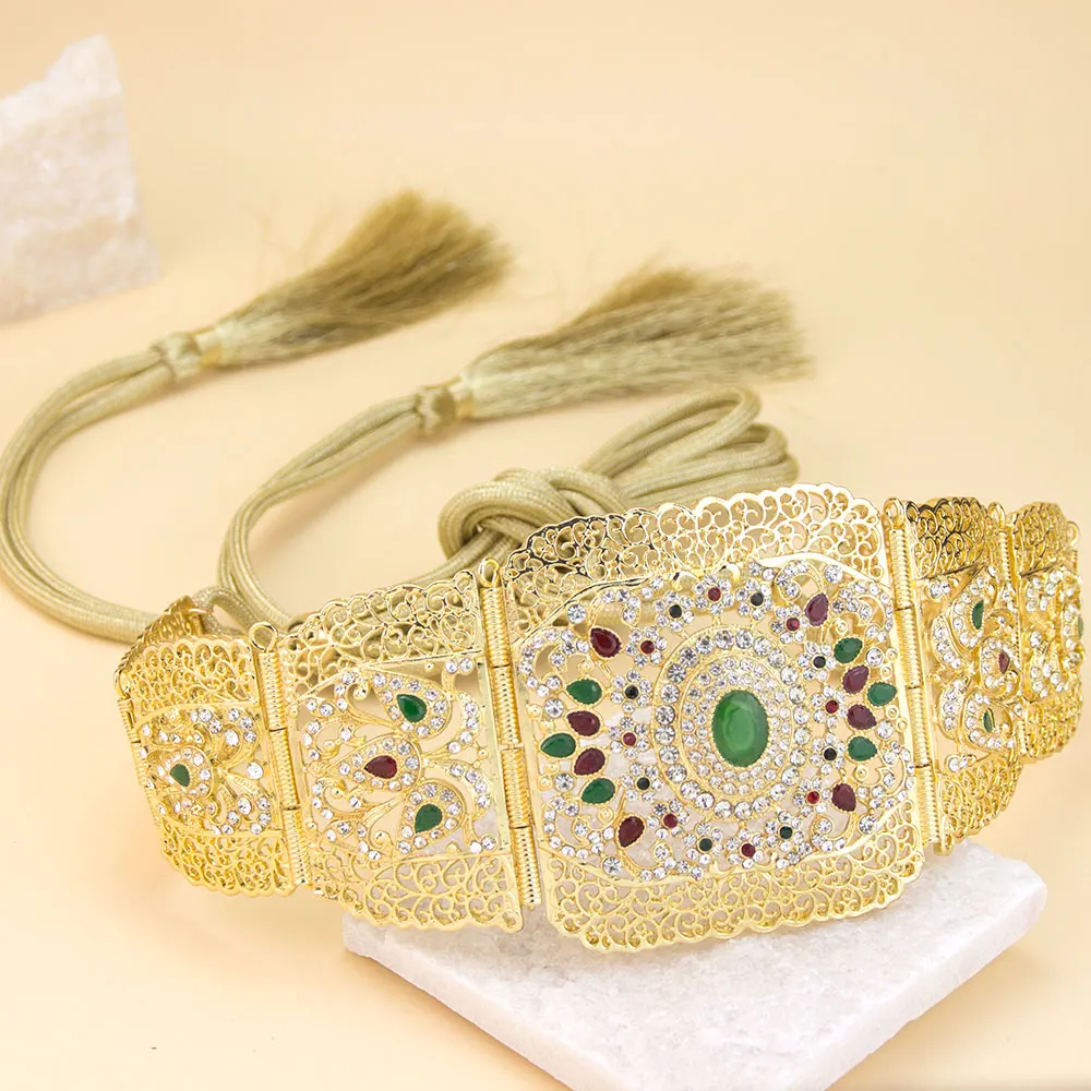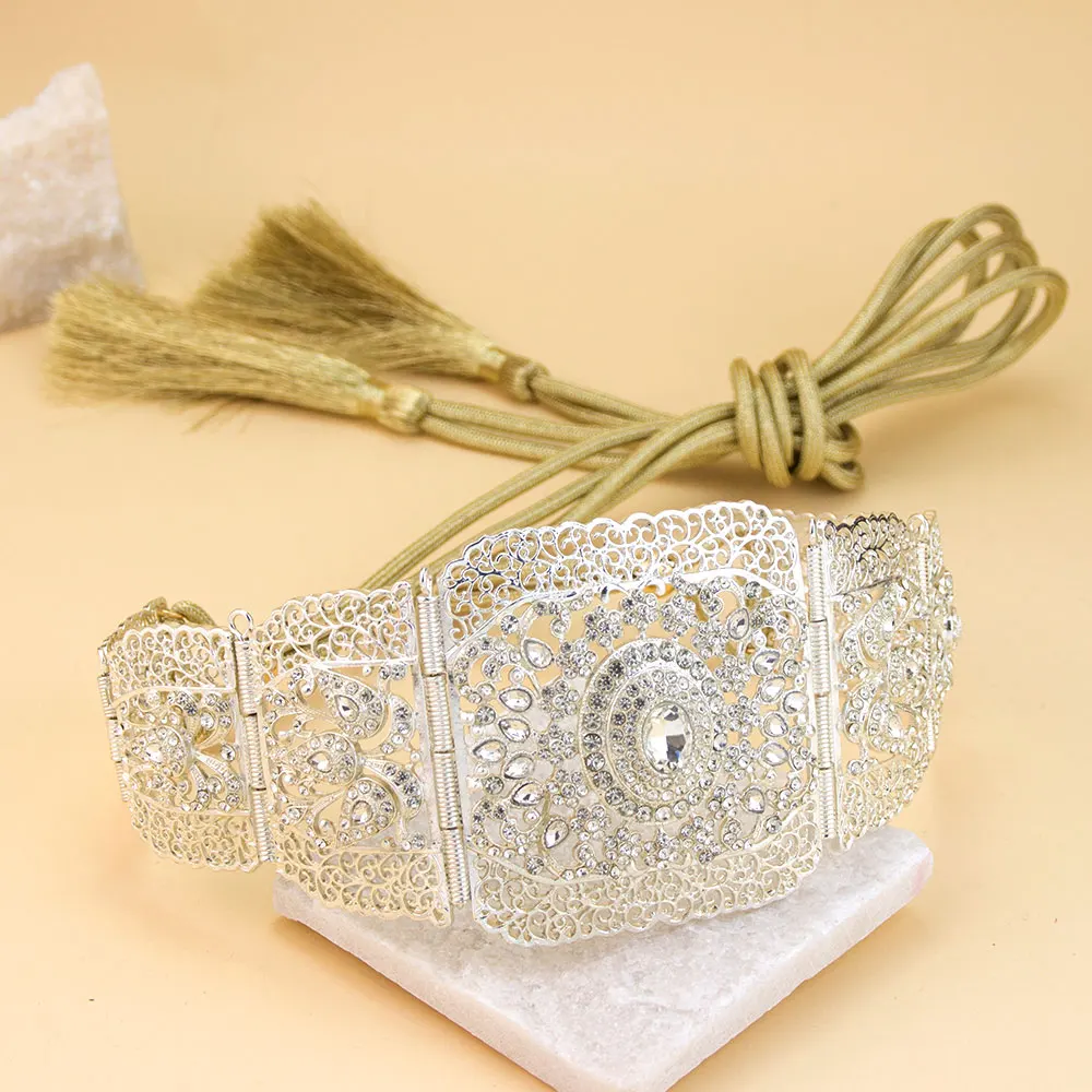 Ceinture de mariée marocaine en cristal pour femmes, Robe ethnique arabe, corde, chaîne de taille creuse, bijoux de fête quotidiens |