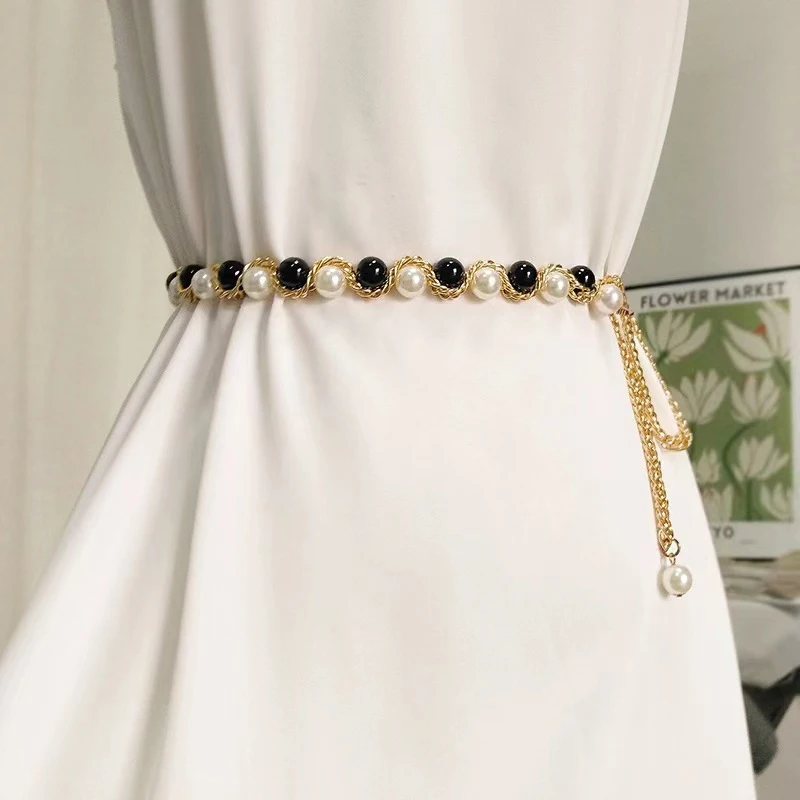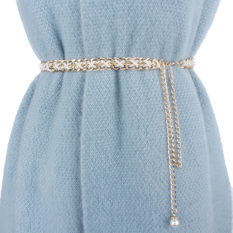 Ceinture de perles élégante pour femmes, chaîne de taille, boucle élastique, chaîne de perles, accessoires pour vêtements féminins |