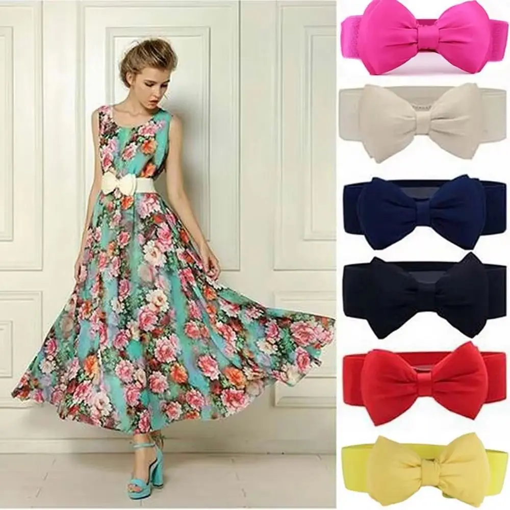 Ceinture de taille à gros nœud papillon, 1 pièce, Durable, large boucle extensible, ceinture élastique en Satin pour filles et femmes |