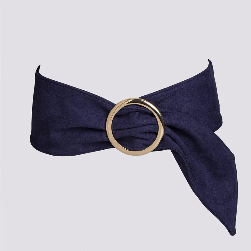 Ceinture de taille en daim à boucle ronde haut de gamme pour femmes rétro à la mode et élégante, douce et confortable, polyvalente avec un large ruban