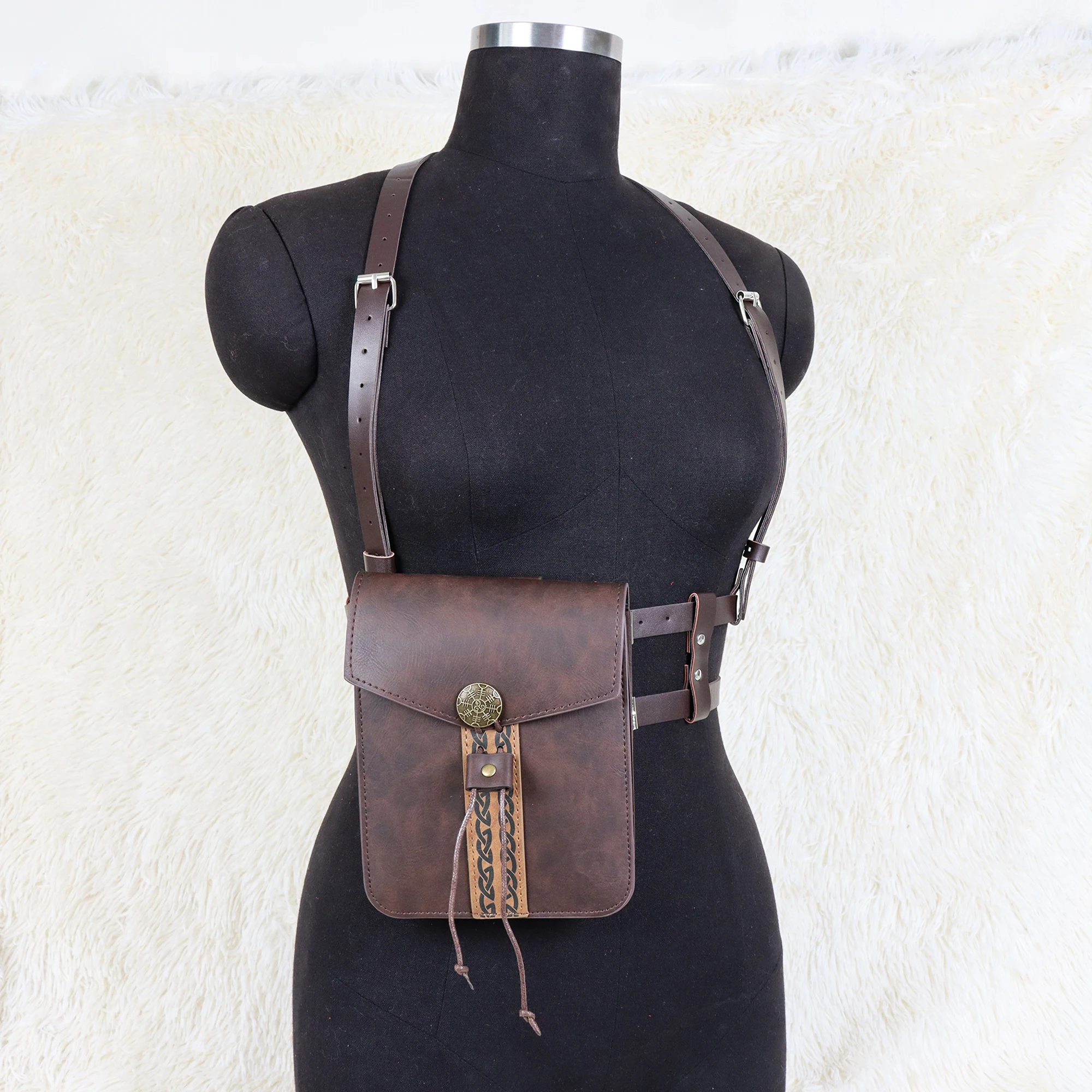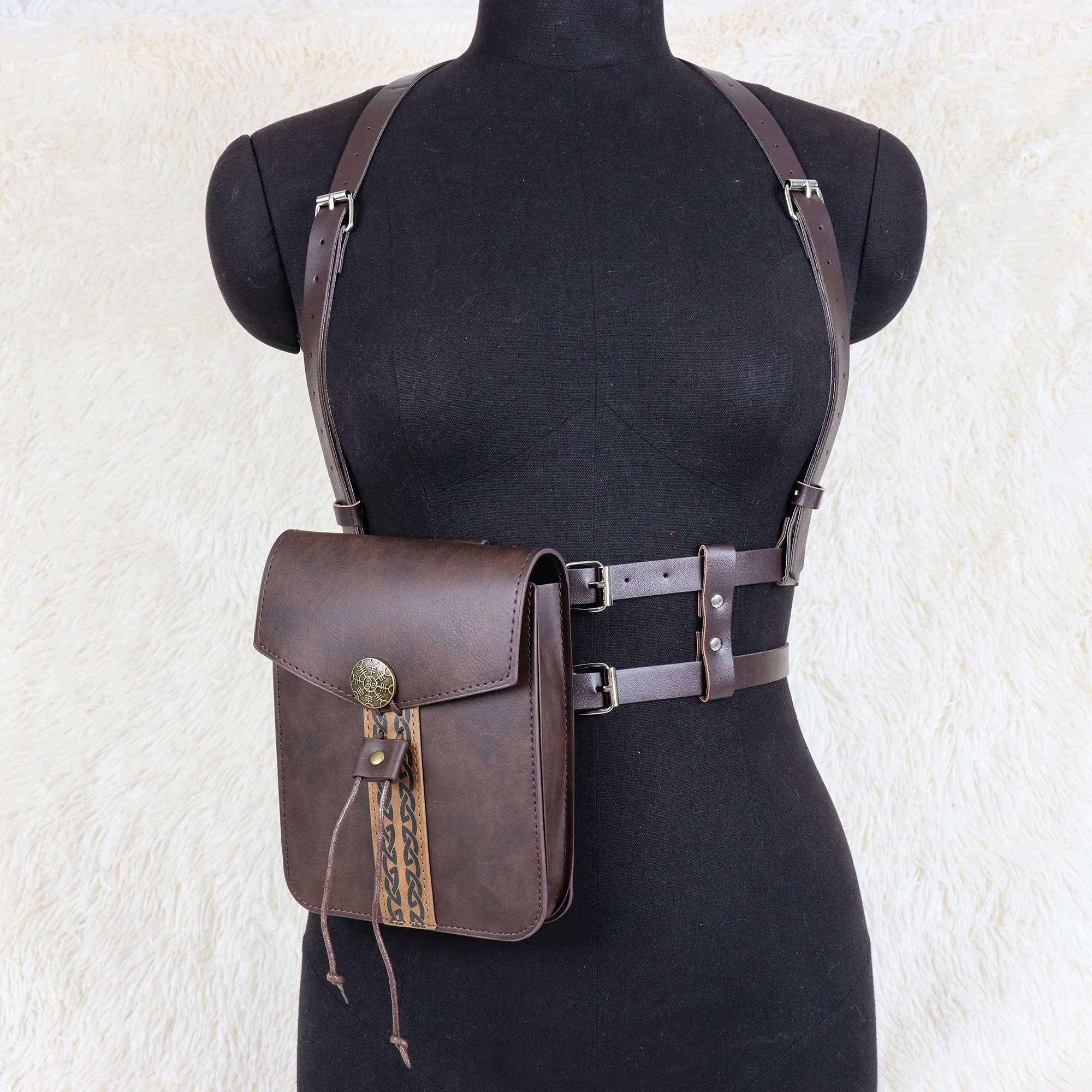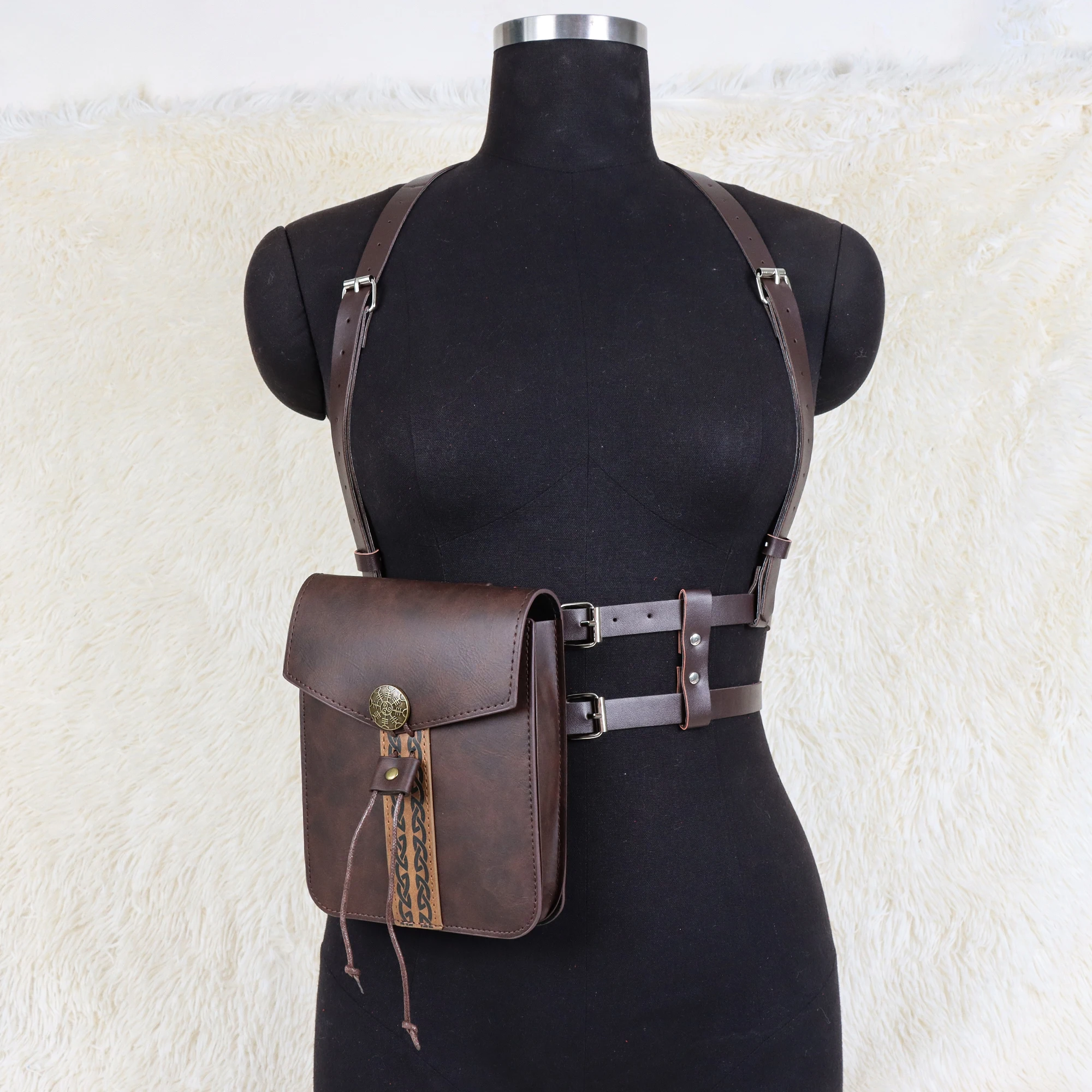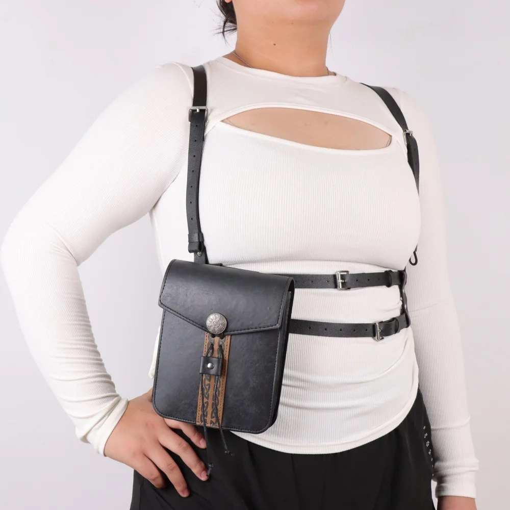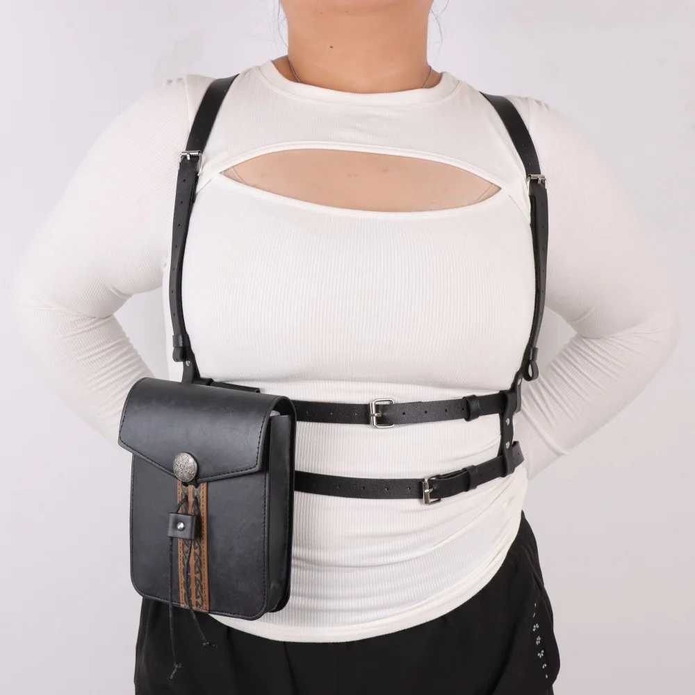 Ceinture de taille pour femmes avec sac de taille rétro, adaptée au LARP, ensemble de costumes de Cosplay en simili cuir |