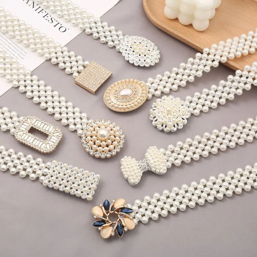 Ceinture de taille rétro en perles scintillantes pour femmes, large boucle en métal, élastique, strass, jupe décorative |