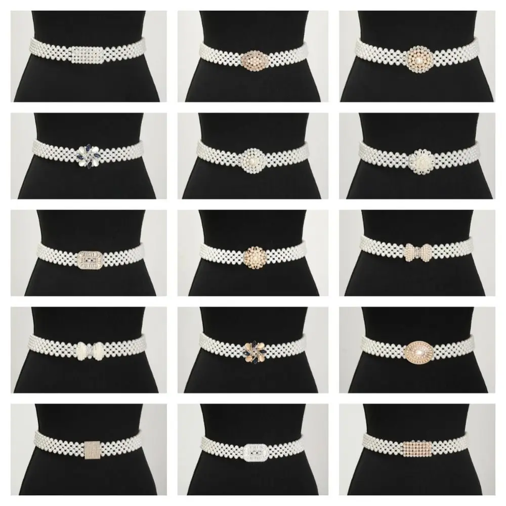 Ceinture de taille rétro en perles scintillantes, strass, boucle en métal, élastique, large, pour femmes et filles |