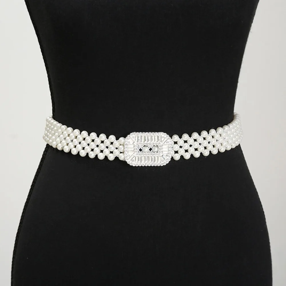 Ceinture de taille Simple en perles scintillantes, large boucle en métal, élastique, longue chaîne pour femmes, ceinture de mariée