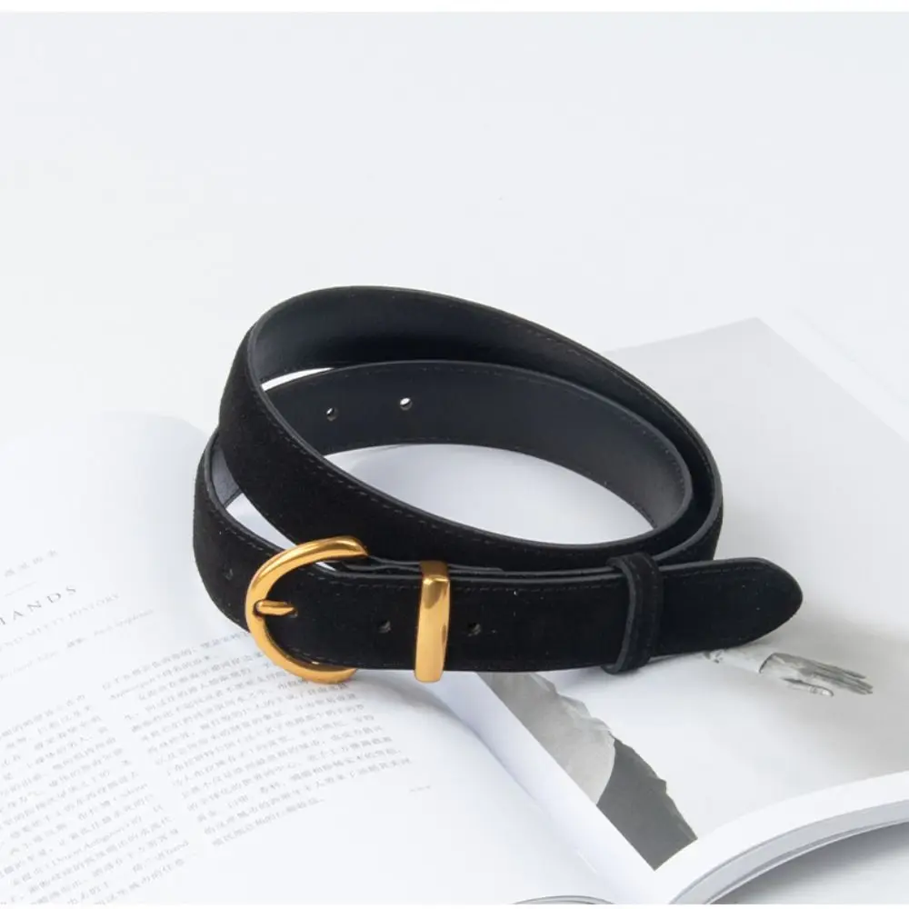 Ceinture décontractée en daim et cuir véritable pour femme, tendance rétro, broche en alliage, design de luxe, cadeaux d’affaires