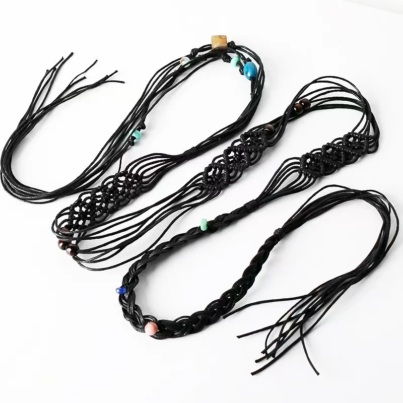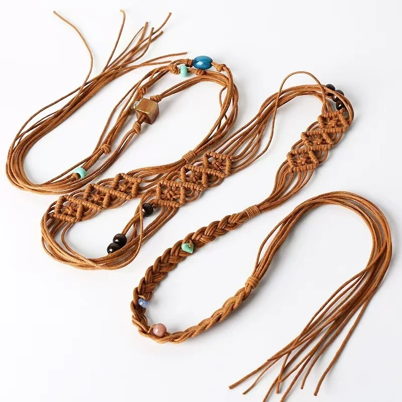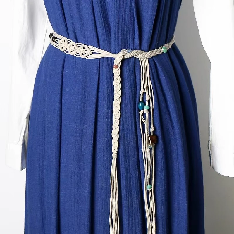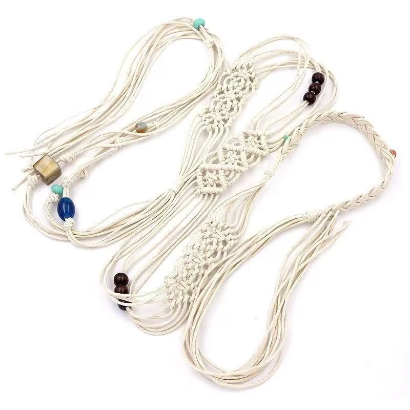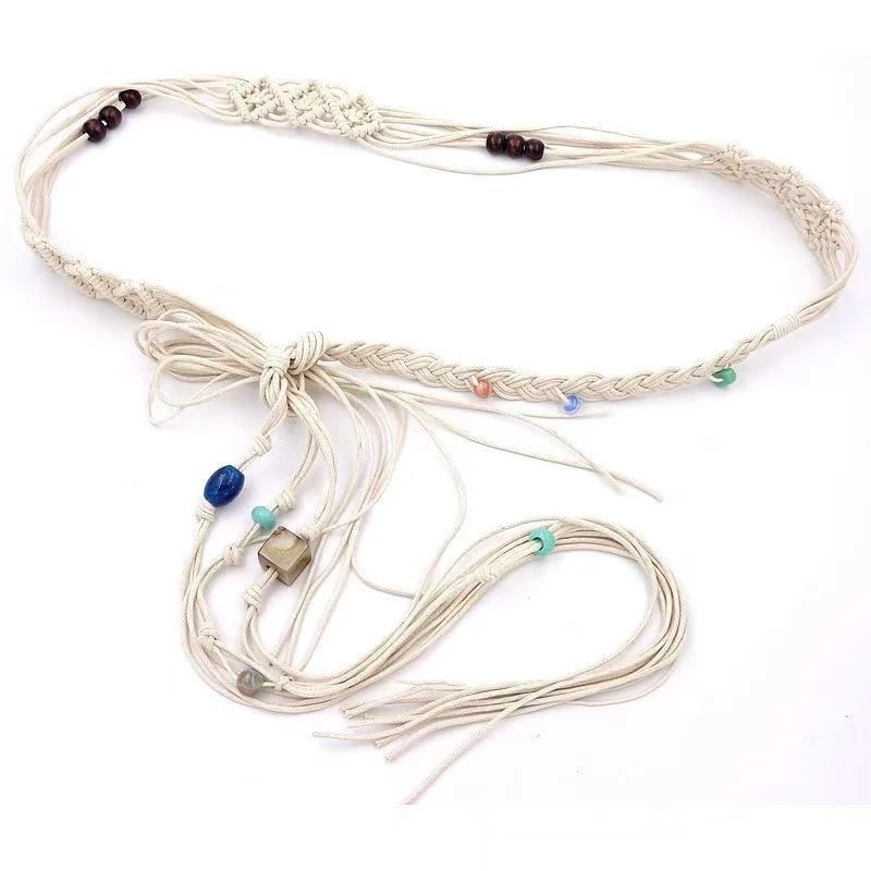 Ceinture Décorative Ethnique pour Femme, Pompon Perlé, Corde en Coton, Simple, Accessoire Polyvalent pour Tenue Décontractée, Été |