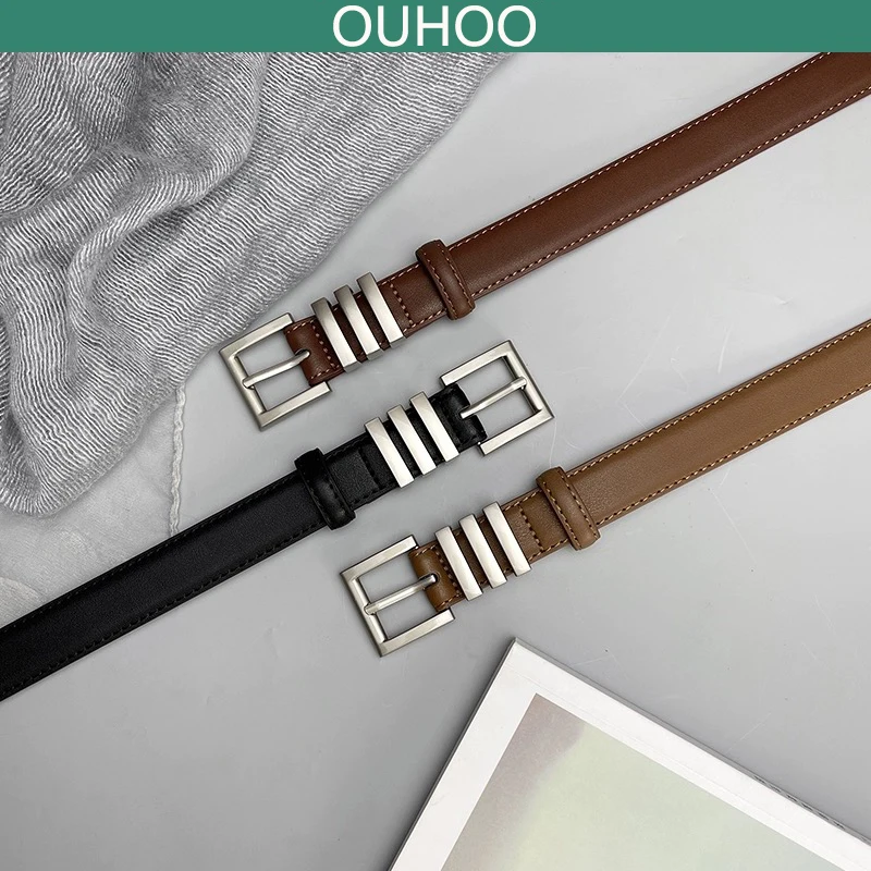 Ceinture élégante à boucle ardillon carrée argentée pour femmes, ceinture de luxe noire et brune assortie pour robe en jean, ceintures réglables