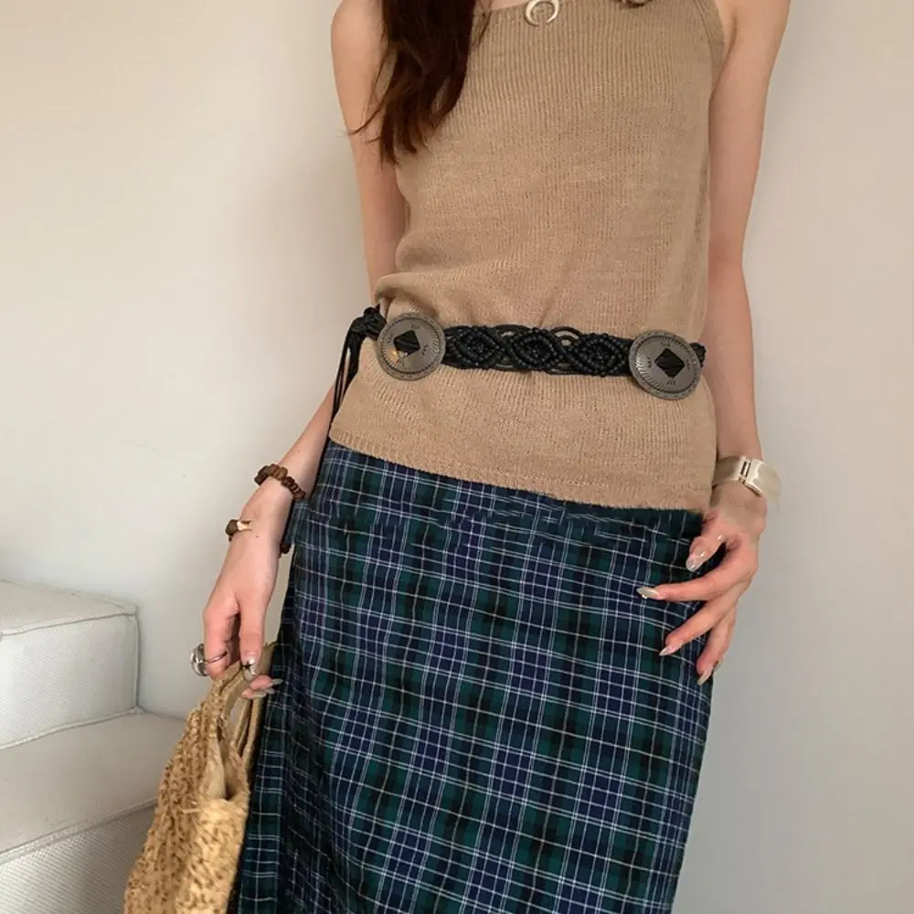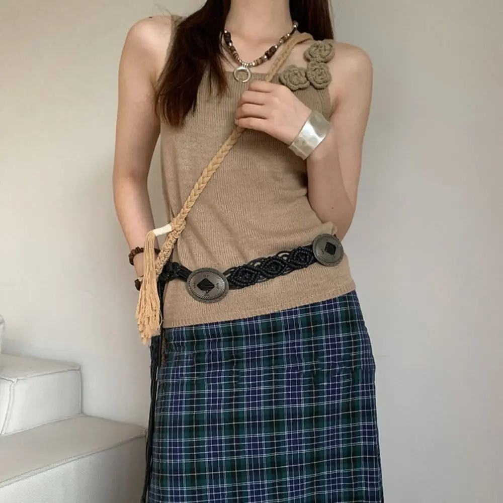 Ceinture élégante de Style ethnique, tissée, rétro, Style bohème, corde de taille, pompon creux, chaîne de plage |