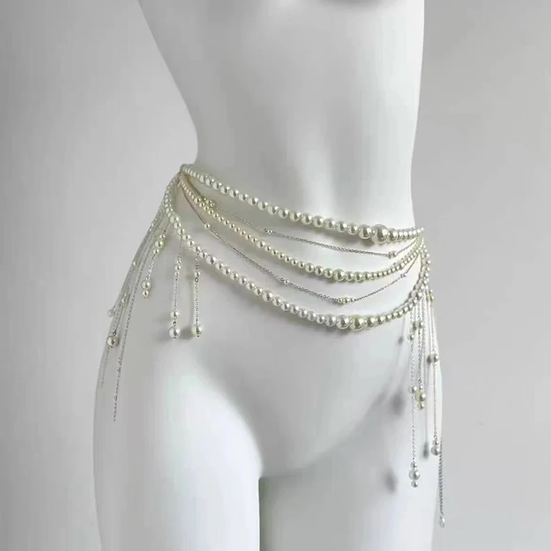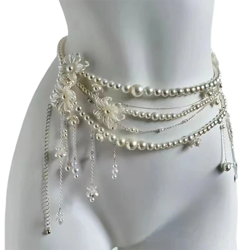 Ceinture élégante en perles avec pompons à fleurs multibrins ; Accessoire de vêtements pour femmes parfait |