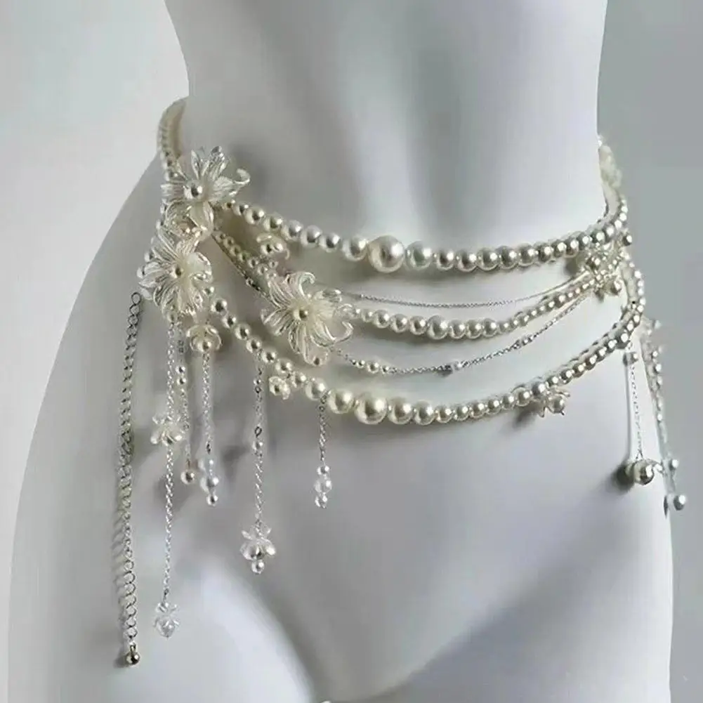 Ceinture en chaîne de taille en perles multicouches rétro Y2K pour femmes, accessoires de bijoux de corps élégants pour fête et tenue décontractée