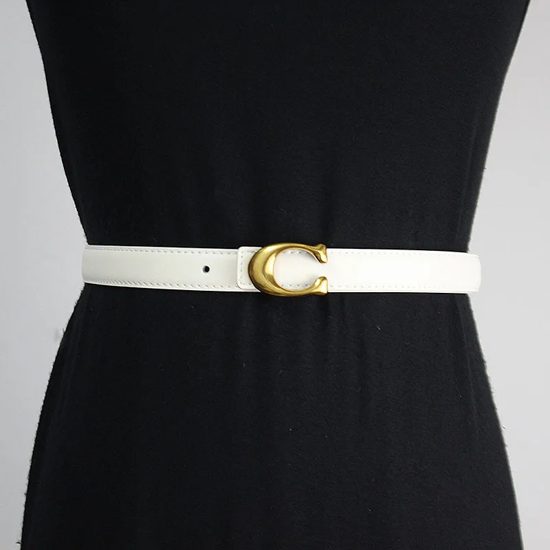 Ceinture en cuir élégante pour femmes, boucle avec lettre 3D, cuir de vache souple, style polyvalent pour pantalons et robes, classique et nouveauté