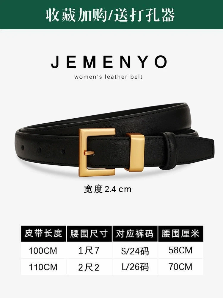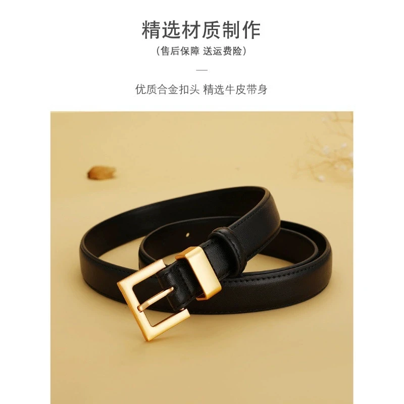 Ceinture en cuir pour femme ; décoration polyvalente en peau de vache pour ceinture de taille de costume ; ceinture en jean de style ins noir haut de gamme simple et rétro. |