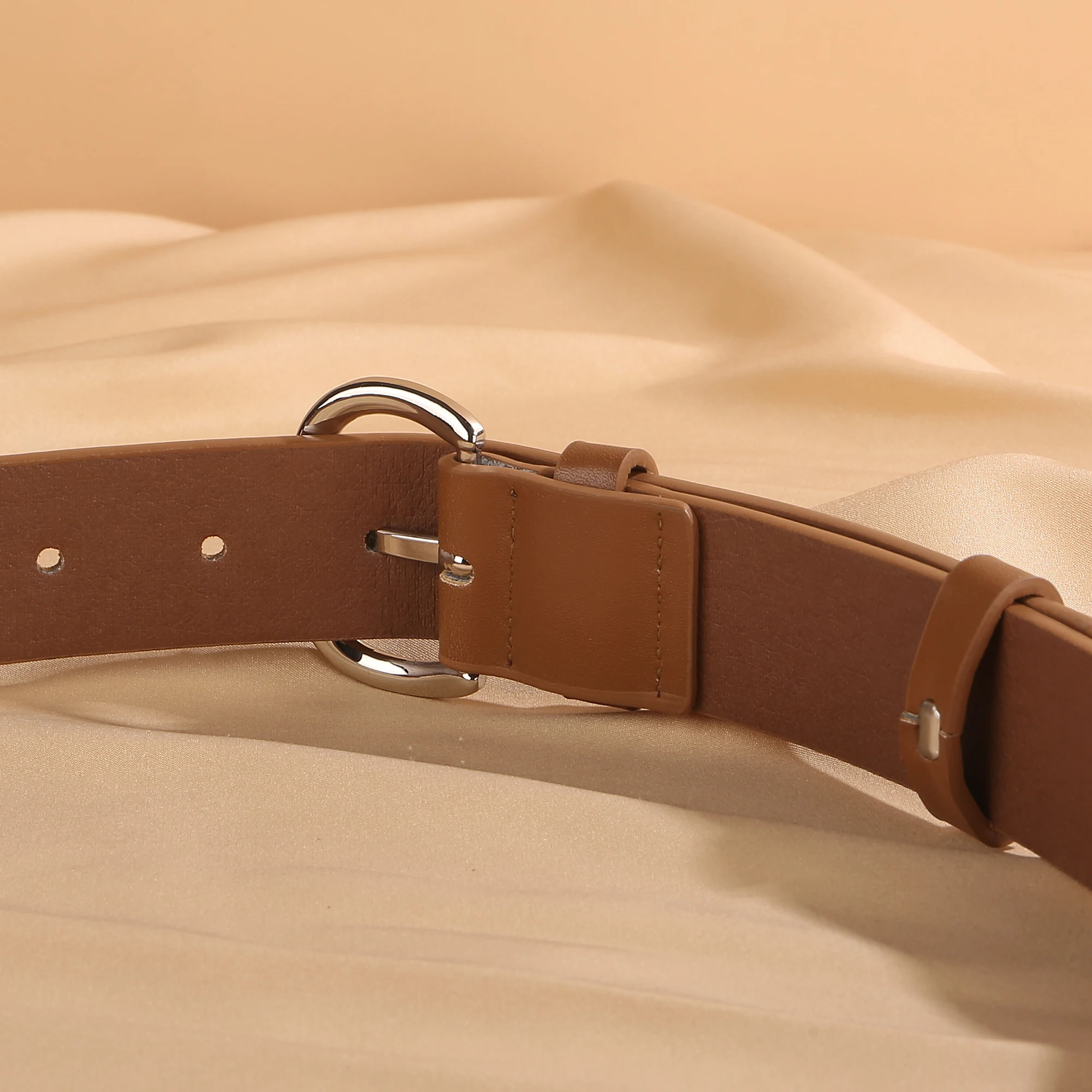 Ceinture en cuir pour femmes avec boucle argentée, ceinture de taille décontractée à la mode pour pantalons et robes en jean, ceinture élégante et réglable pour dames