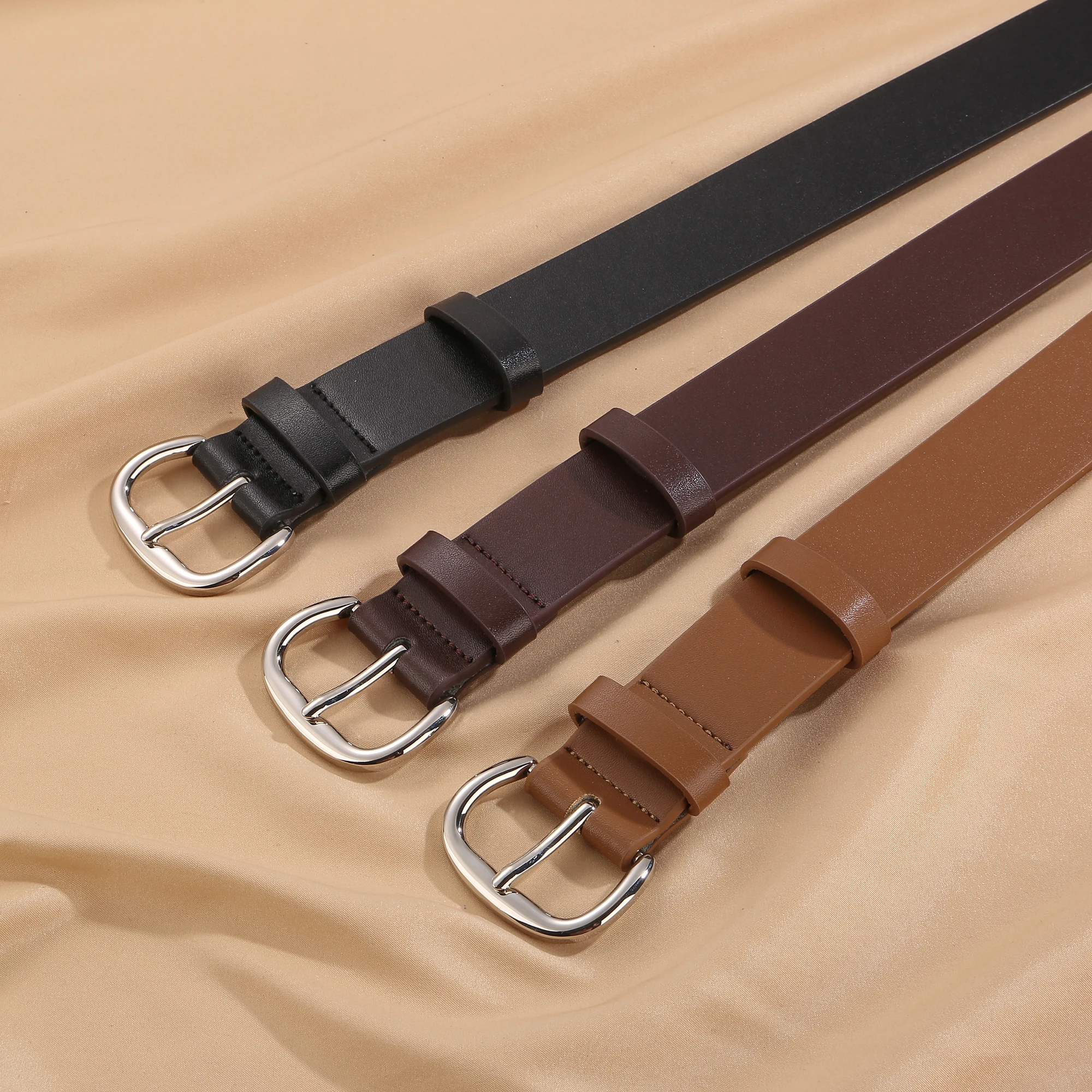 Ceinture en cuir pour femmes avec boucle argentée, ceinture de taille décontractée à la mode pour pantalons et robes en jean, ceinture élégante et réglable pour dames |