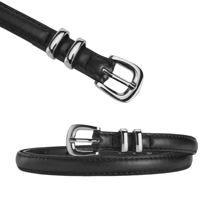 Ceinture en cuir PU pour femme, broche argentée, ceinture strucmince, tendance de la mode, ceinture rétro gothique simple, accessoires polyvalents pour jeans