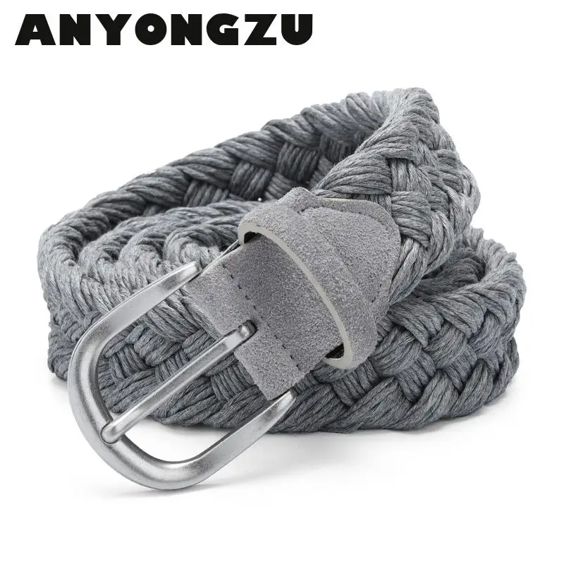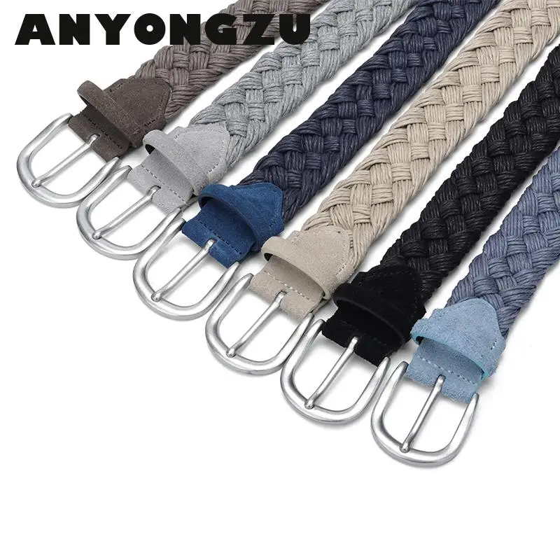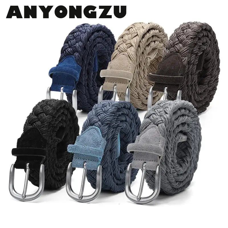 Ceinture en daim tressée pour homme, ULd'avertissement, argent antique, sangle de structure, sans trous, coton, tissage manuel, noir, gris, beige, bleu |