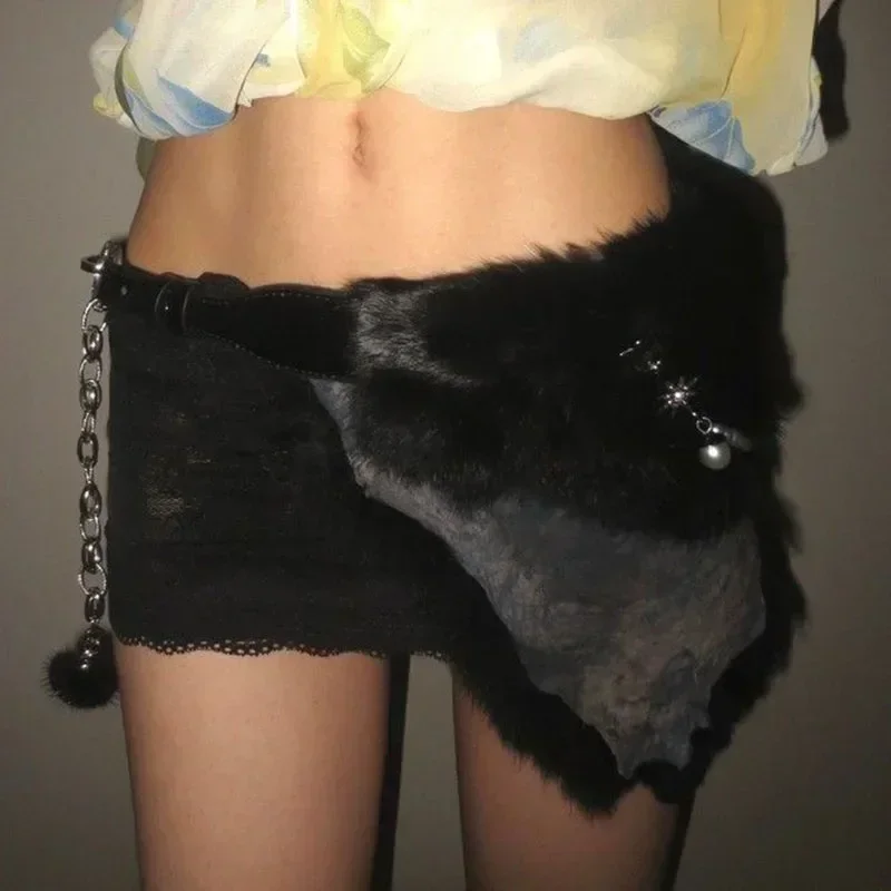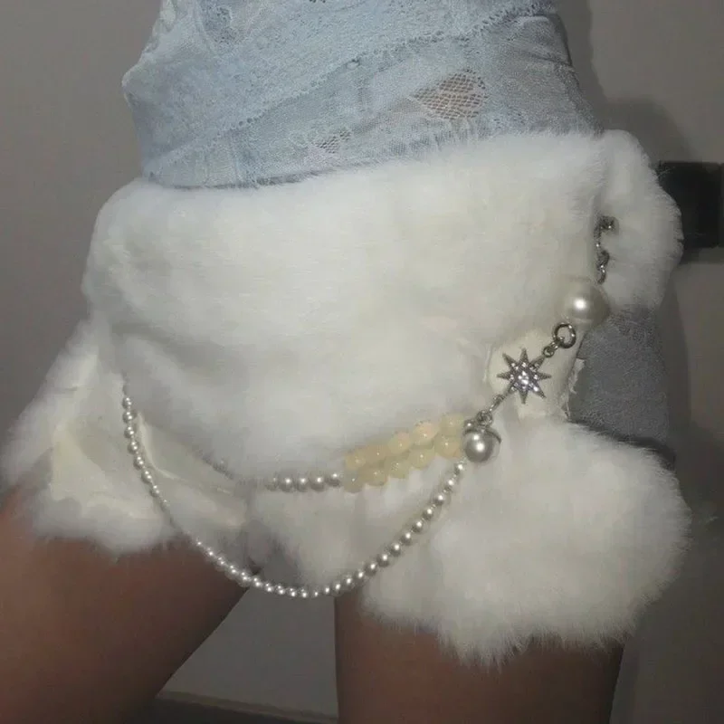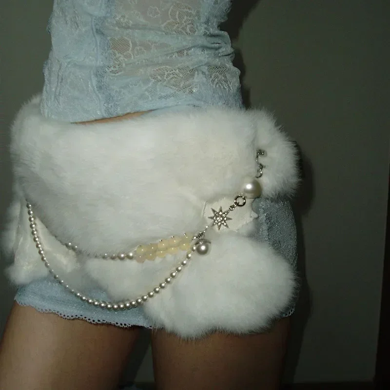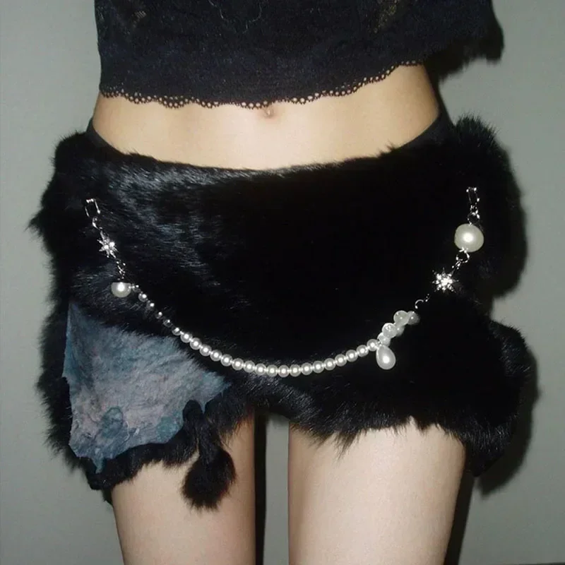 Ceinture en fourrure de lapin Sexy, chaîne de perles, ceinture en fourrure Y2K, Vintage, Cowgirl, gothique, Punk, étoile, HipHop, pantalon en jean |