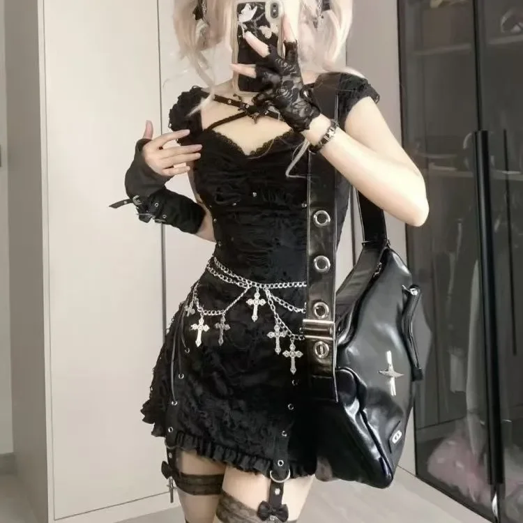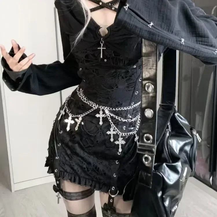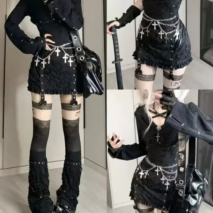 Ceinture en métal multicouche Cool, Punk croix foncée, chaîne de taille pour fille, pantalon gothique, accessoire de chaîne, ceinture de mode superposée pour Cosplay |