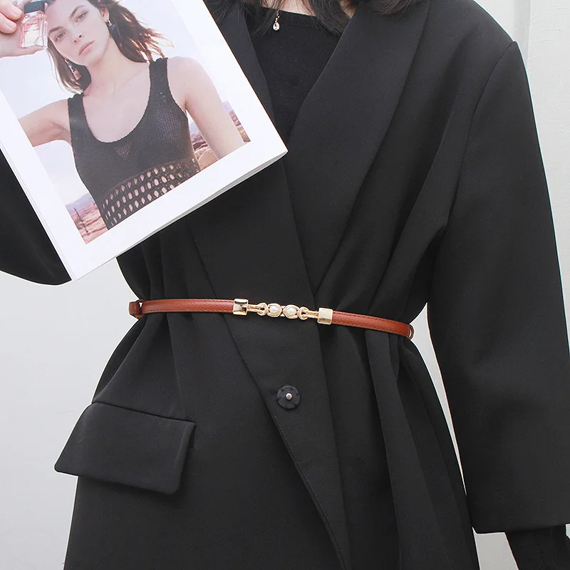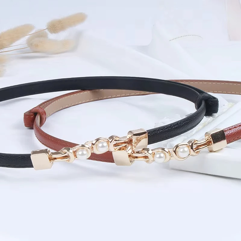 Ceinture fine en cuir PU pour femmes, boucle en perles, élégante, réglable, sauvage, pour robe, jupe, bretelles décoratives, nouvelle collection |