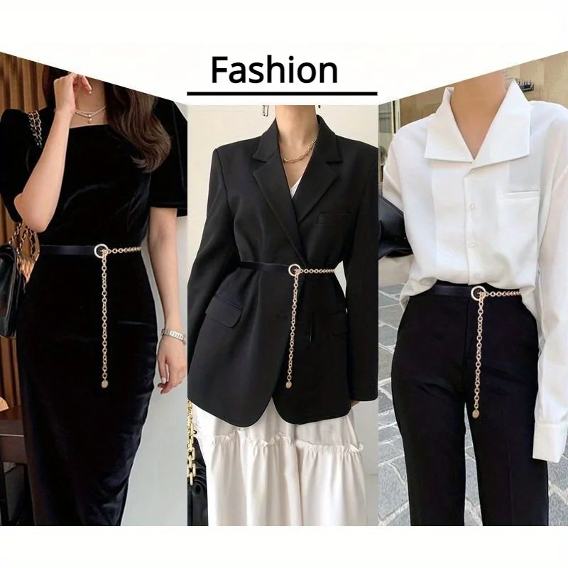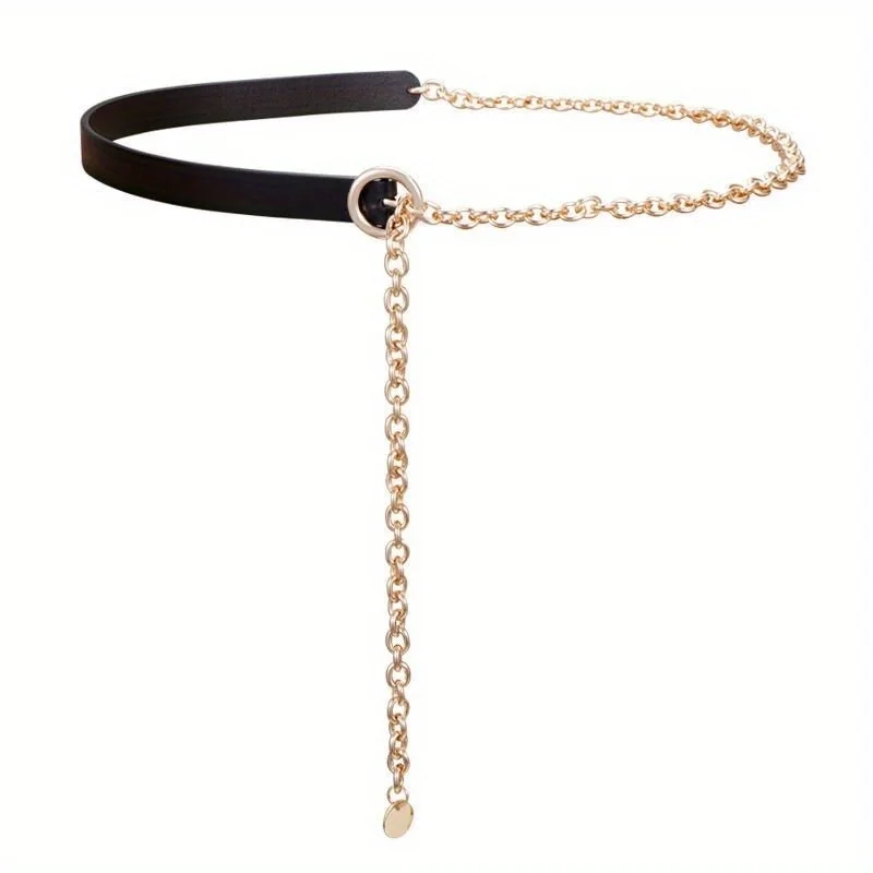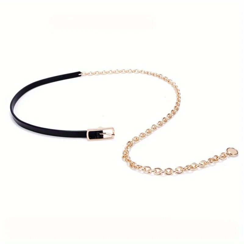 Ceinture fine en métal noir pour femmes, chaîne de taille, chemise à la mode, costume décoratif avec robe polyvalente, chaîne de chemise GM103 |