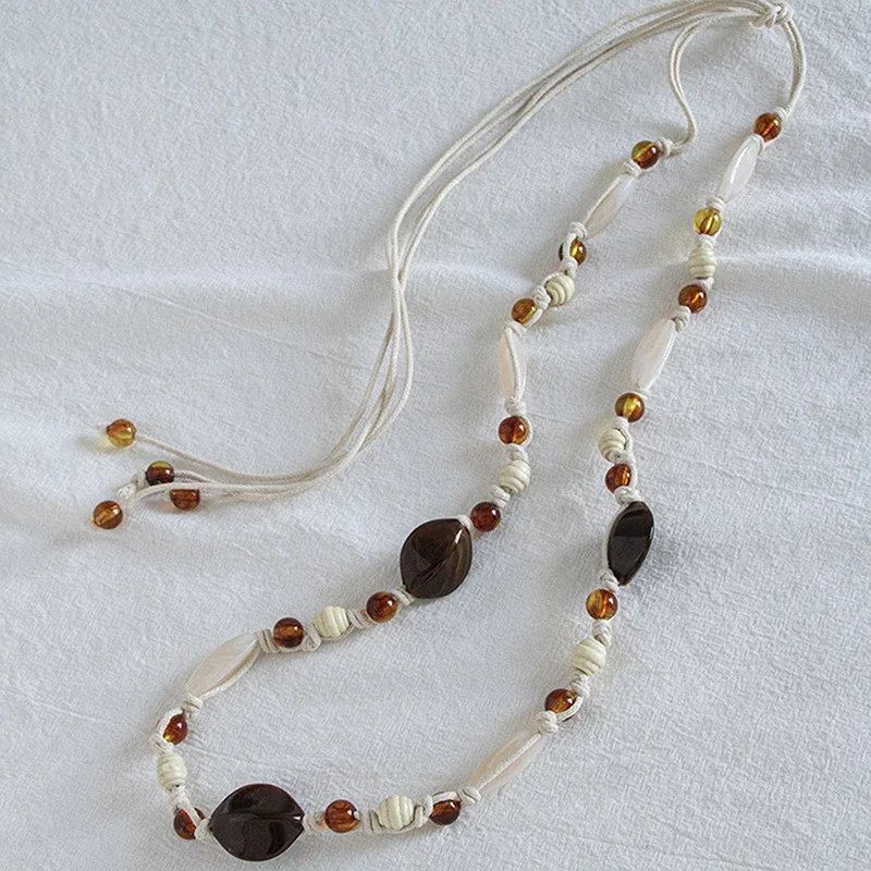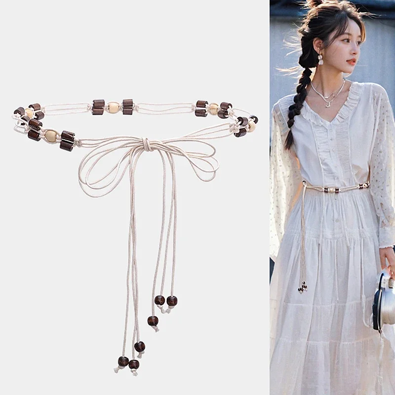 Ceinture fine en perles bleues et brunes pour femmes, Style ethnique bohème, cordes tissées, bretelles décoratives pour robe, accessoire d'été |