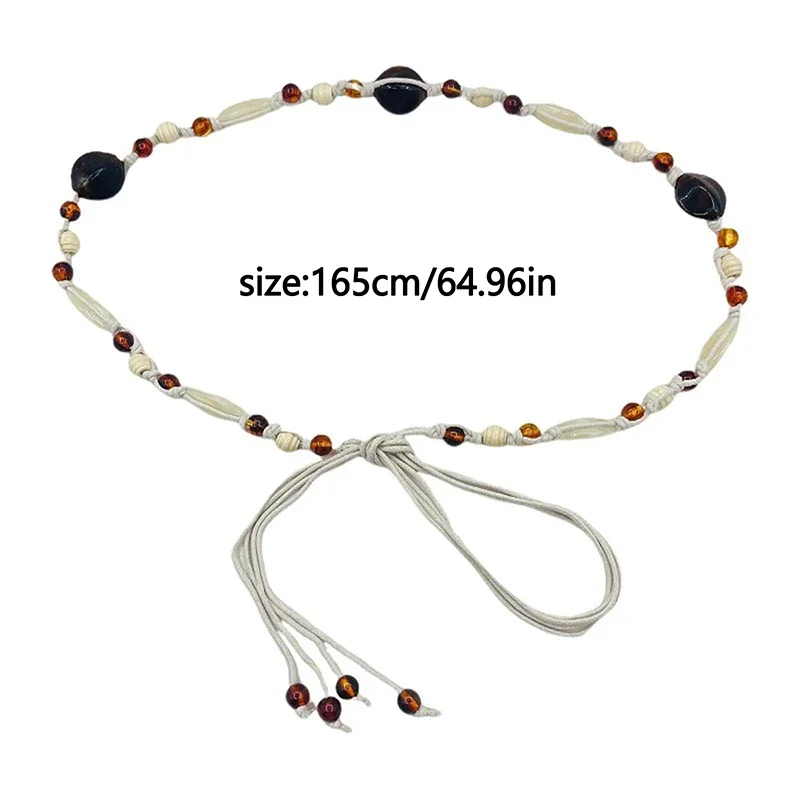 Ceinture fine en perles bleues et brunes pour femmes, Style ethnique bohème, cordes tissées, bretelles décoratives pour robe, accessoire d’été