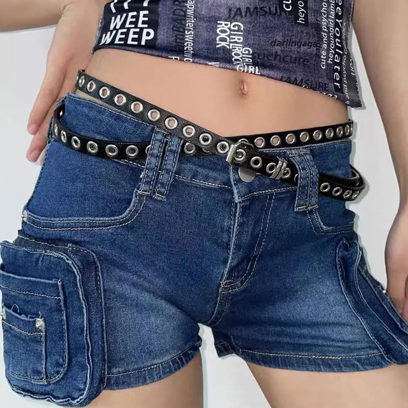 - Design rétro et punk avec double boucle et chaîne de taille pour un style unique