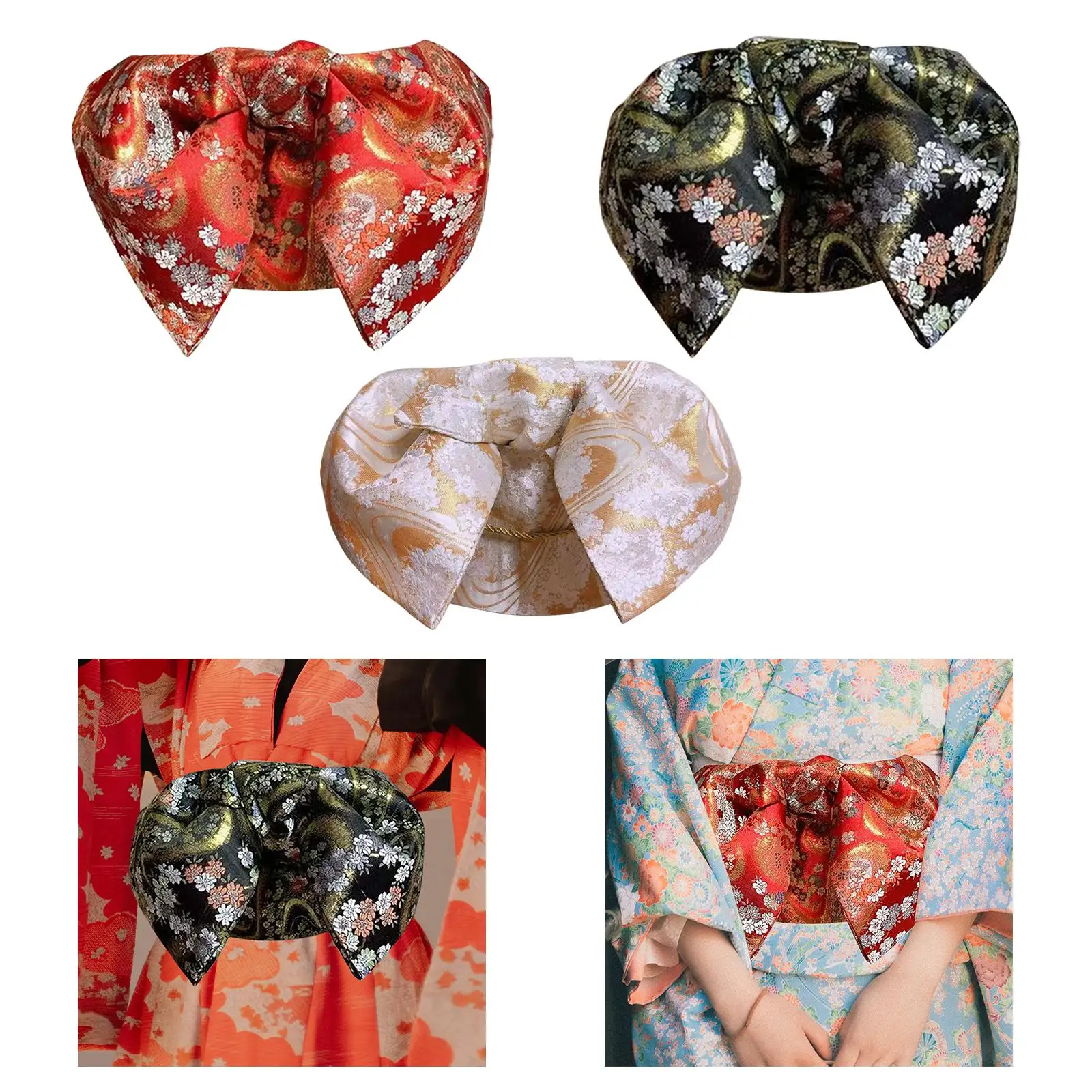 Ceinture kimono Obi de style japonais pour femmes, ceinture à nœud pré-noué, ceinture large Geisha, ceinture en coton papillon multi-motifs |