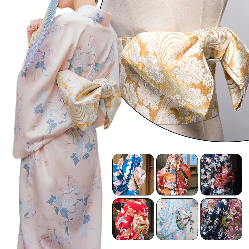 Ceinture Kimono traditionnelle Yukata Obi, magnifique ceinture florale en brocart avec nœud papillon, accessoires de Costume de Geisha rétro japonais |