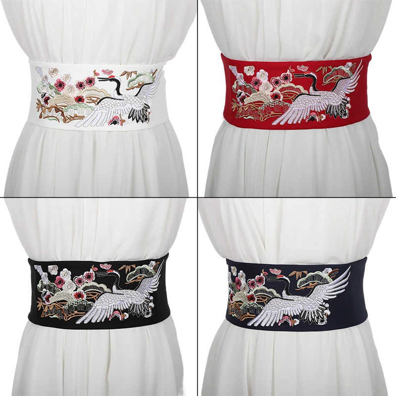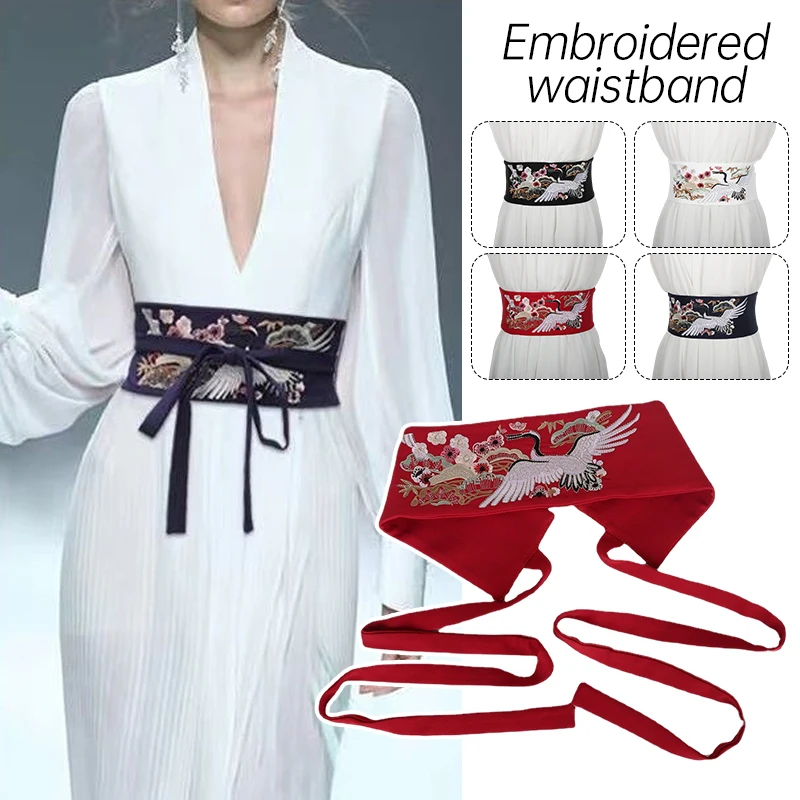 Ceinture large brodée pour femme, ceinture Boho, bande de taille en tissu, environnement pour robe |