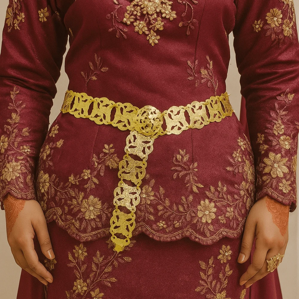 "J'adore cette ceinture traditionnelle ! La chaîne dorée et le pompon ajouré lui confèrent un look très élégant et ethnique. La qualité du métal est solide et la taille s'ajuste parfaitement à ma taille. Le seul bémol est que le premier modèle que j'ai reçu était légèrement tordu, mais l'équipe a rapidement résolu le problème en me renvoyant un nouveau produit. Dans l'ensemble, je suis très satisfaite de mon achat et je la porte régulièrement pour donner une touche unique à mes tenues."